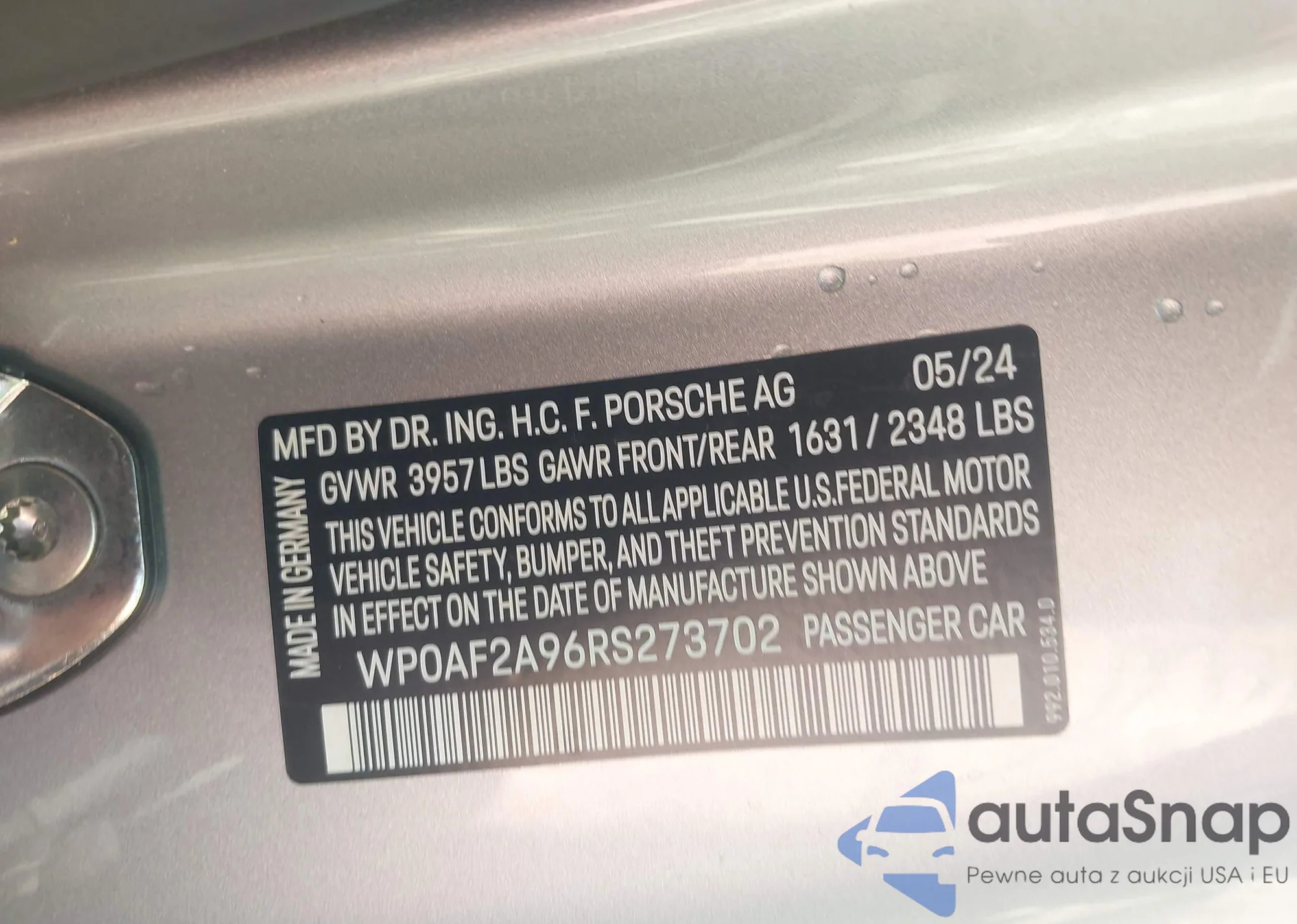 VIN: WP0AF2A96RS273702