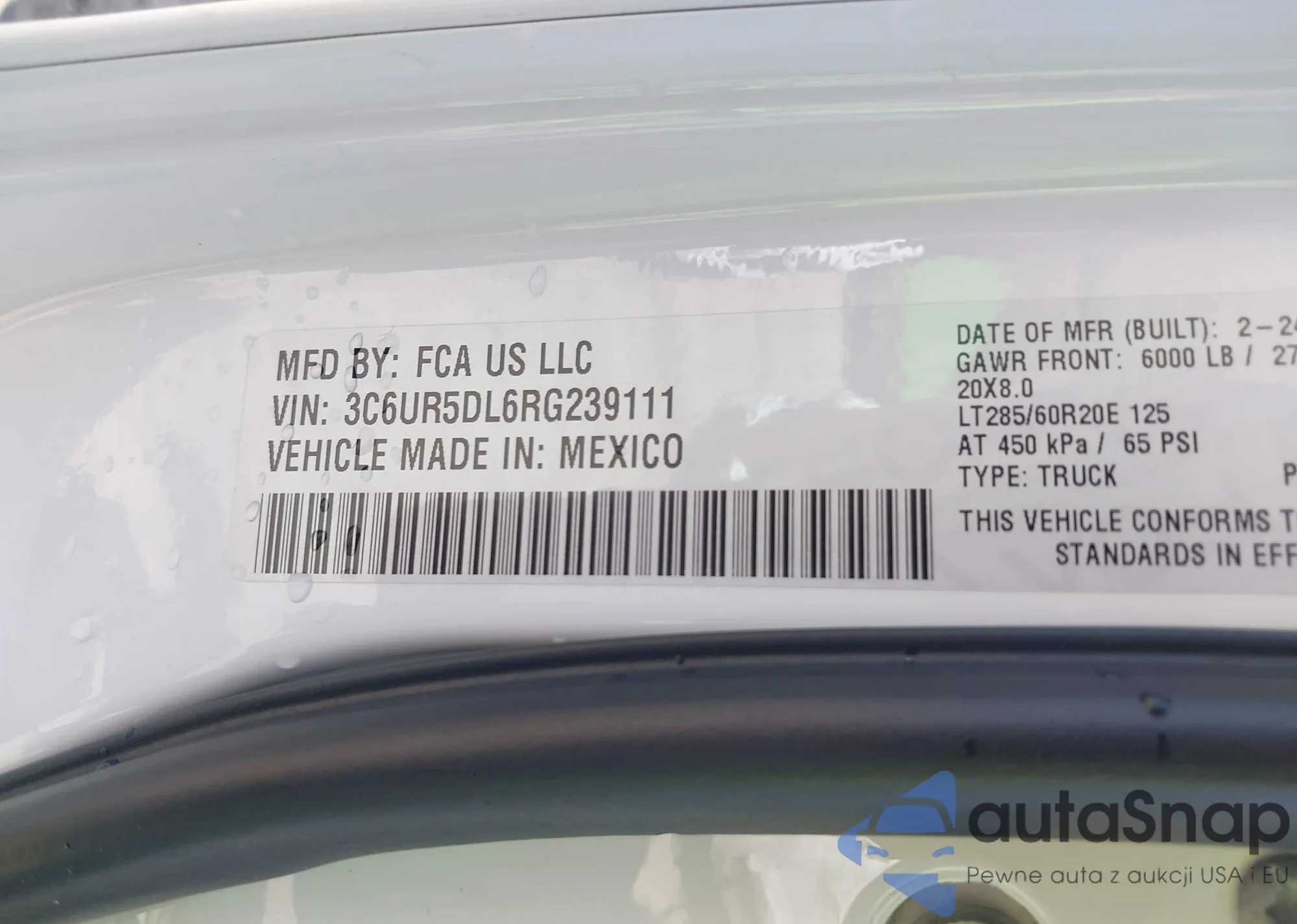 VIN: 3C6UR5DL6RG239111