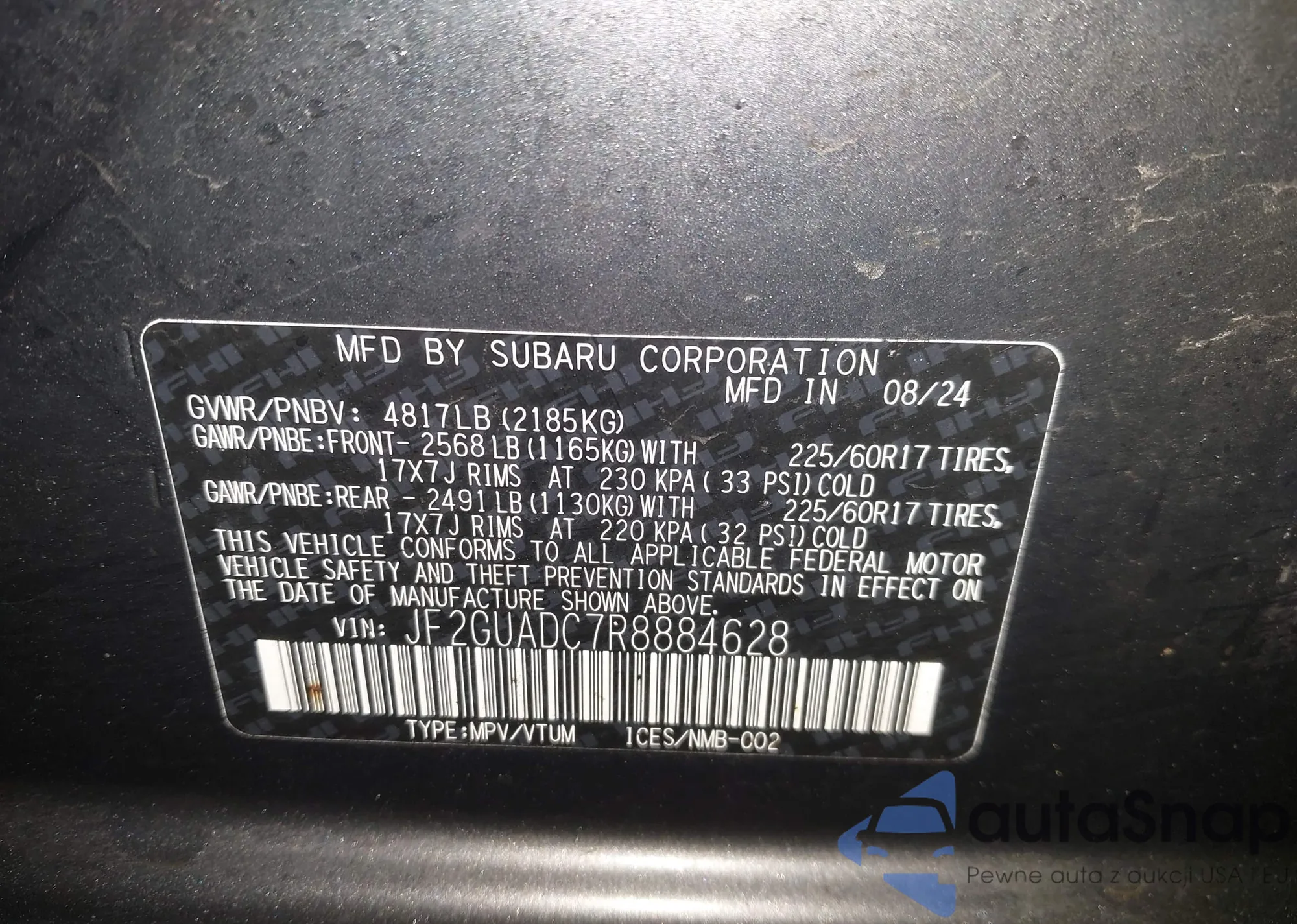 VIN: JF2GUADC7R8884628