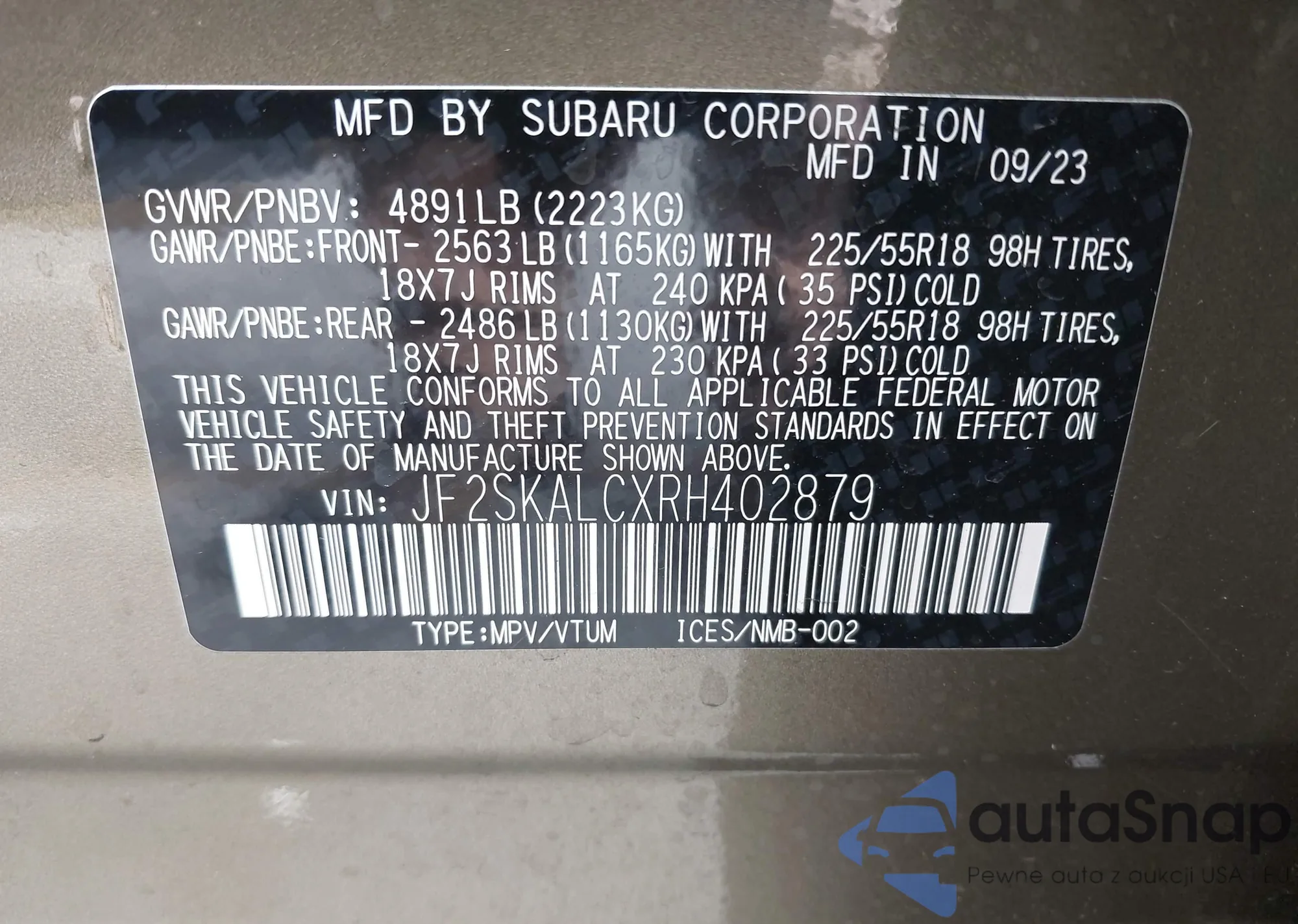 VIN: JF2SKALCXRH402879