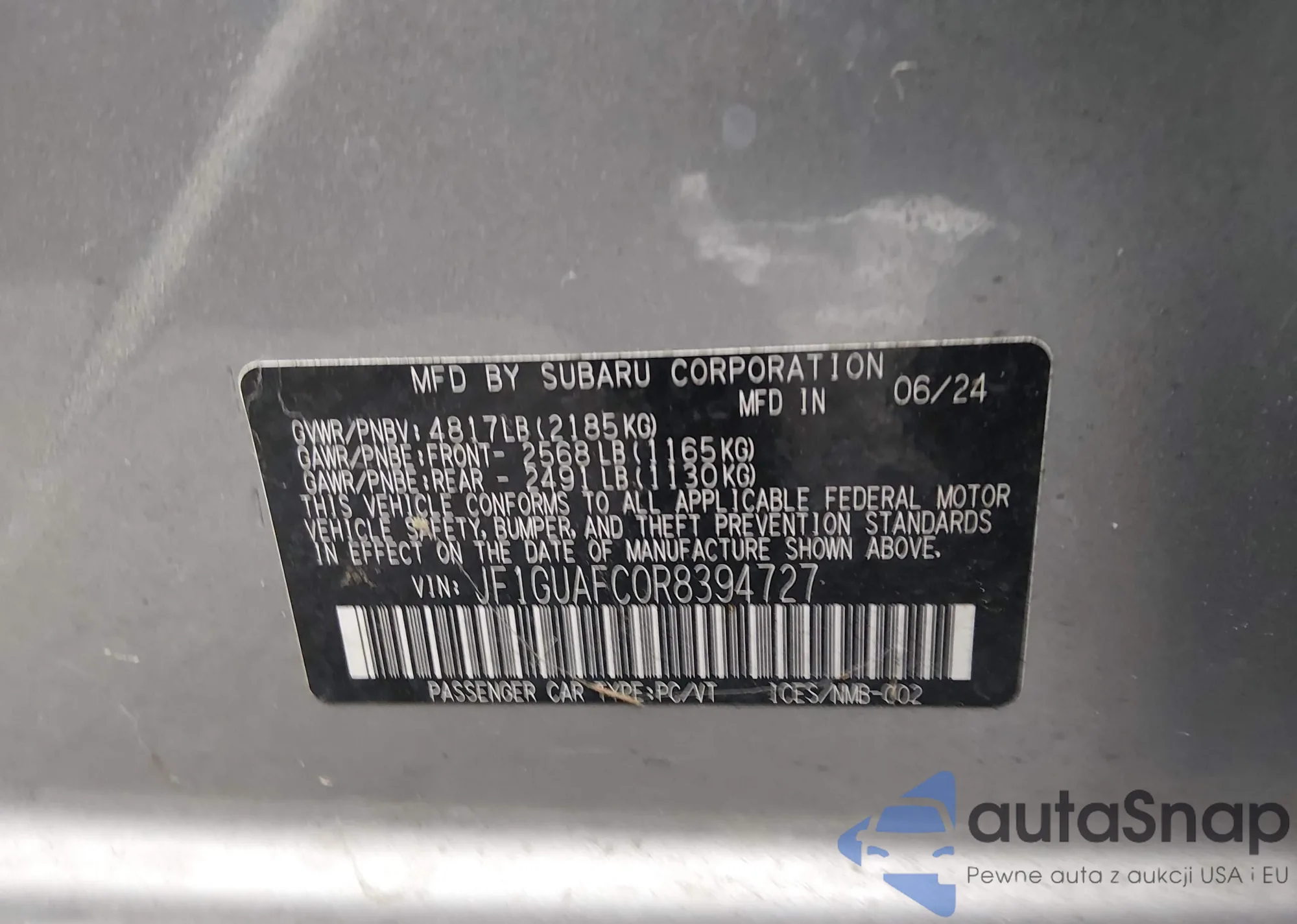 The car Subaru Impreza 2024 (VIN JF1GUAFC0R8394727) has not been auctioned before. The documents are clean, and the mileage matches or is below the market average. Sold by an insurance company – we recommend purchase. Delivery to the port will take approx. 6–8 weeks.