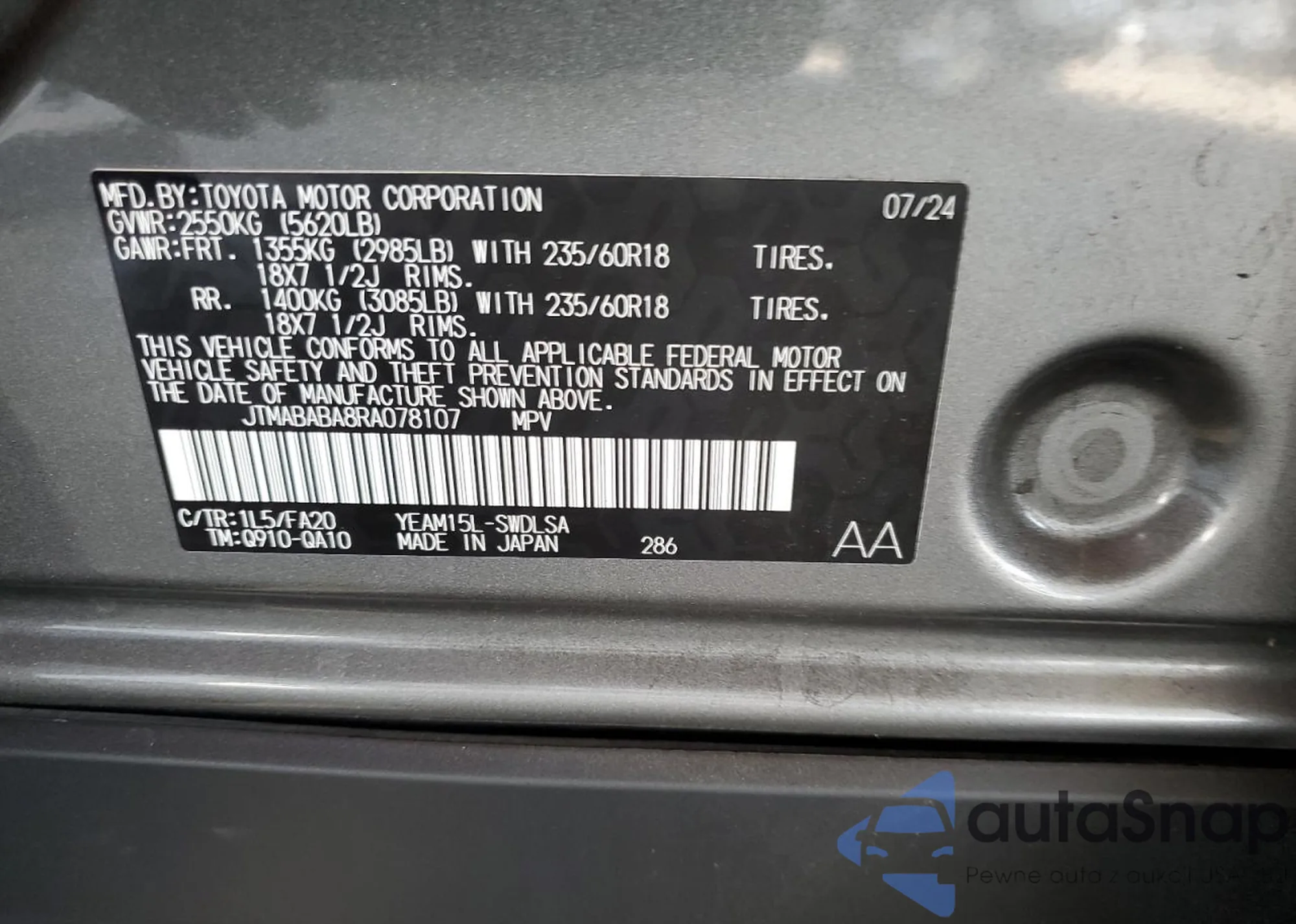 VIN: JTMABABA8RA078107