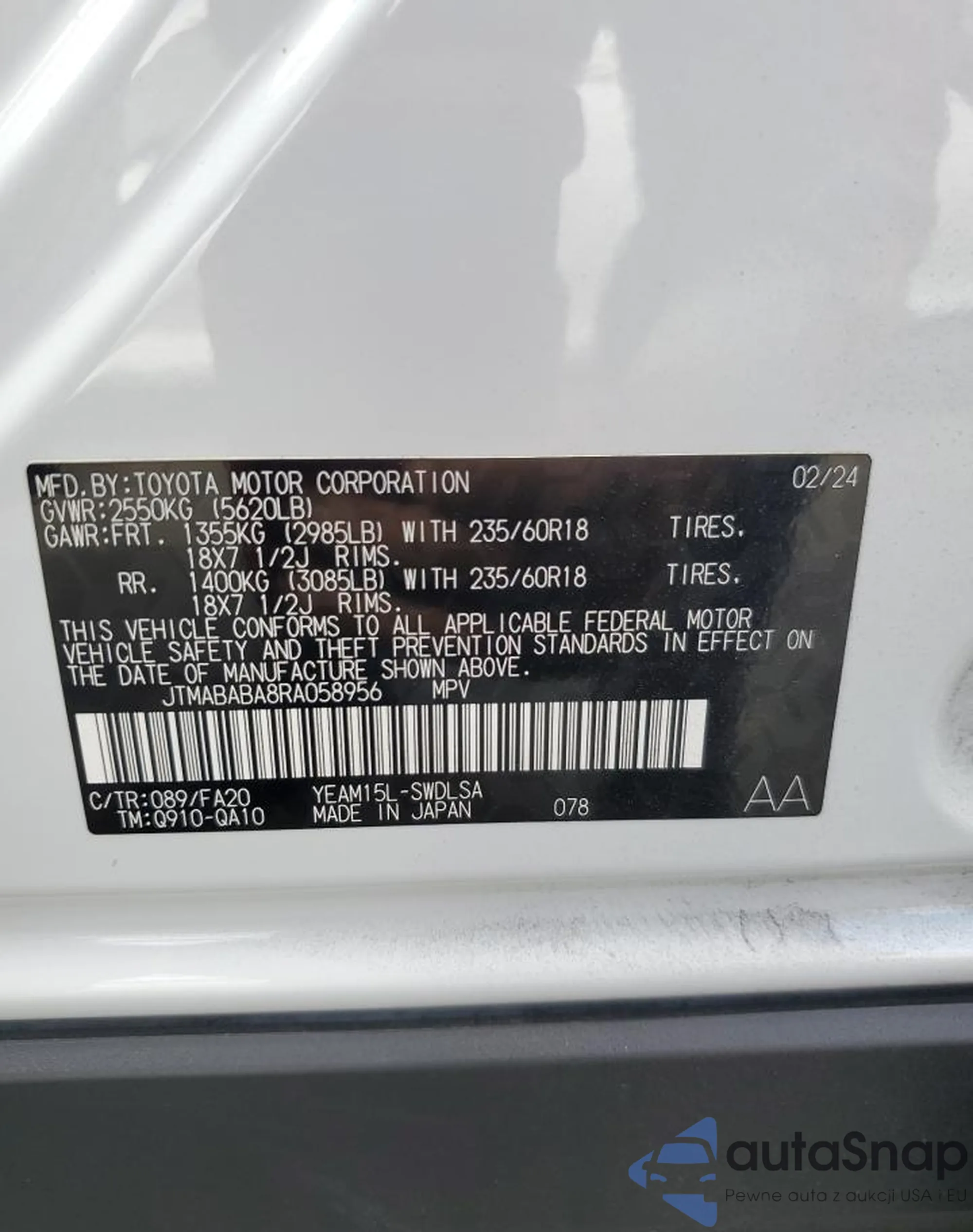 The car Subaru Solterra 2024 (VIN JTMABABA8RA058956) has not been auctioned before. The documents are clean, and the mileage matches or is below the market average. Sold by an insurance company – we recommend purchase. Delivery to the port will take approx. 6–8 weeks.