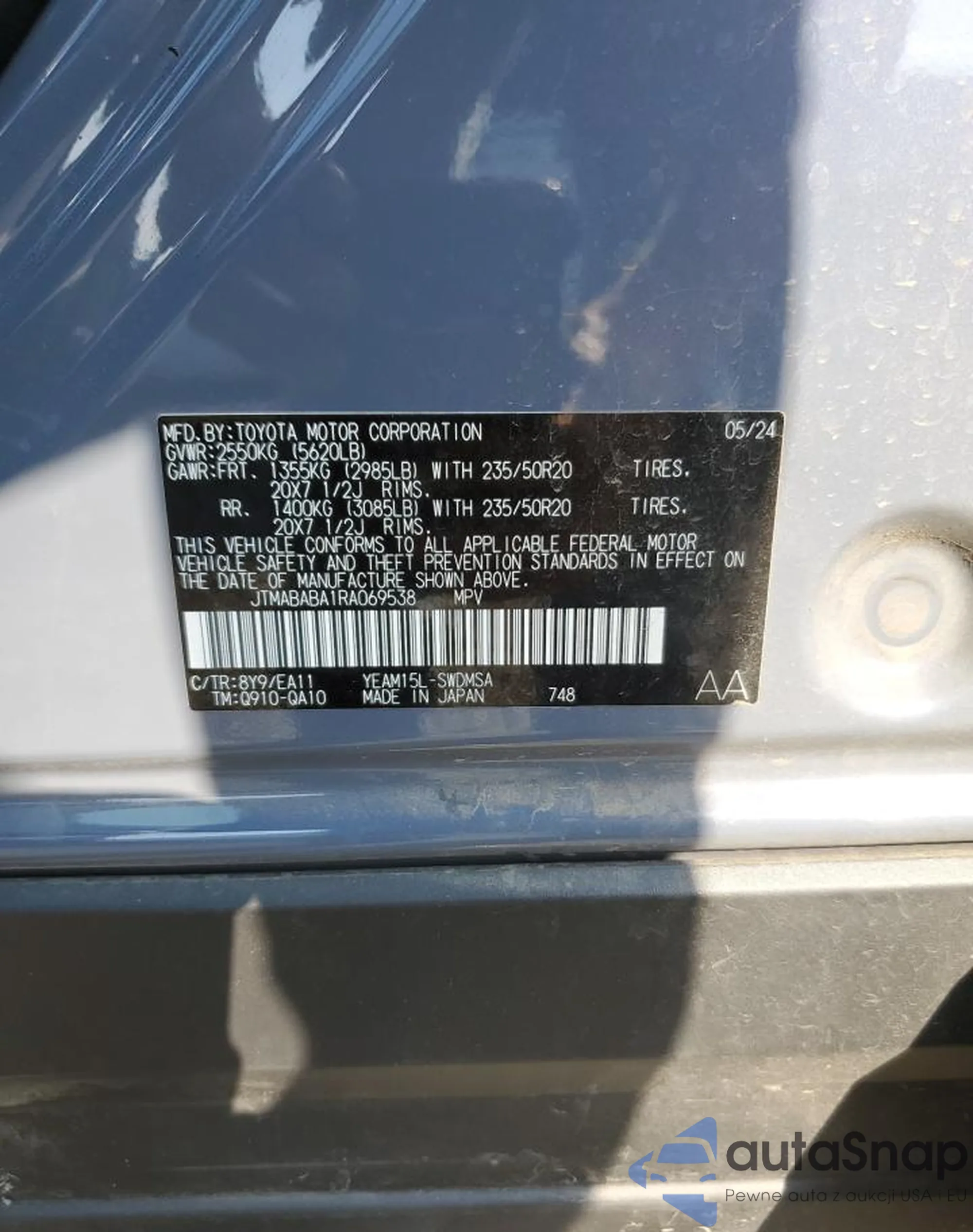 VIN: JTMABABA1RA069538