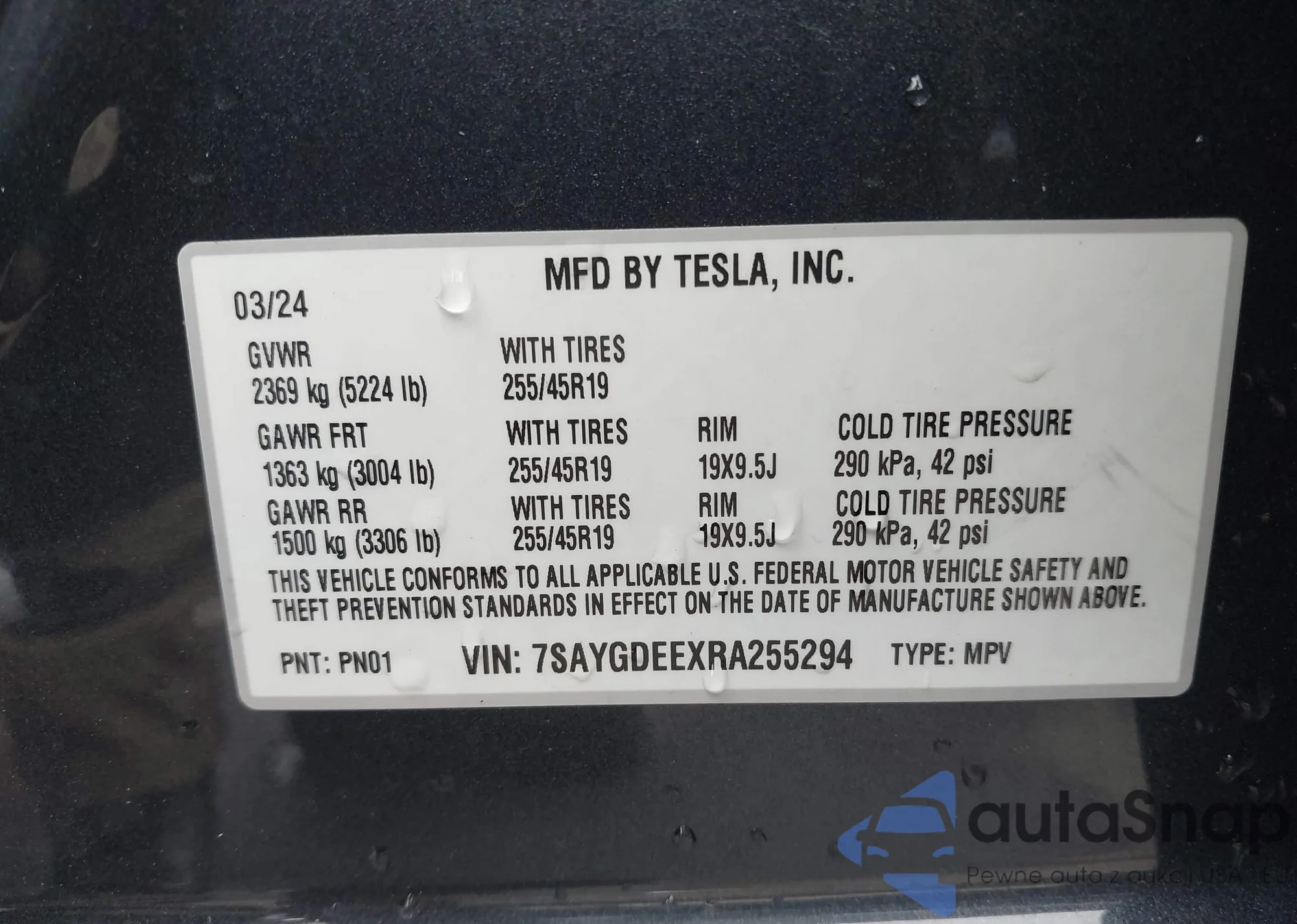 The car Tesla Model Y 2024 (VIN 7SAYGDEEXRA255294) has not been auctioned before (0 auctions). The documents are clean, and the mileage matches or is below the market average. Sold by an insurance company – we recommend purchase. Delivery to the port will take approx. 6–8 weeks.