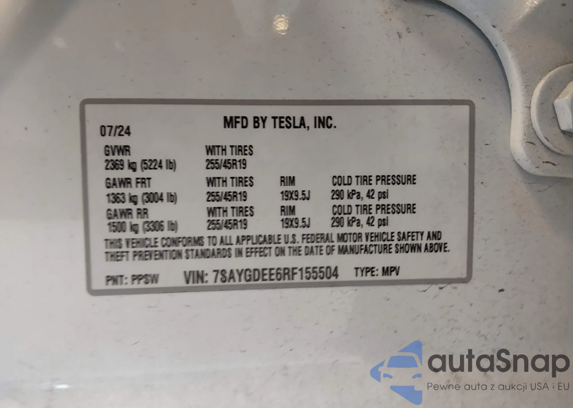 The car Tesla Model Y 2024 (VIN 7SAYGDEE6RF155504) has documents that prevent registration. Export and registration may be difficult. Contact AutaSnap experts to find alternatives.