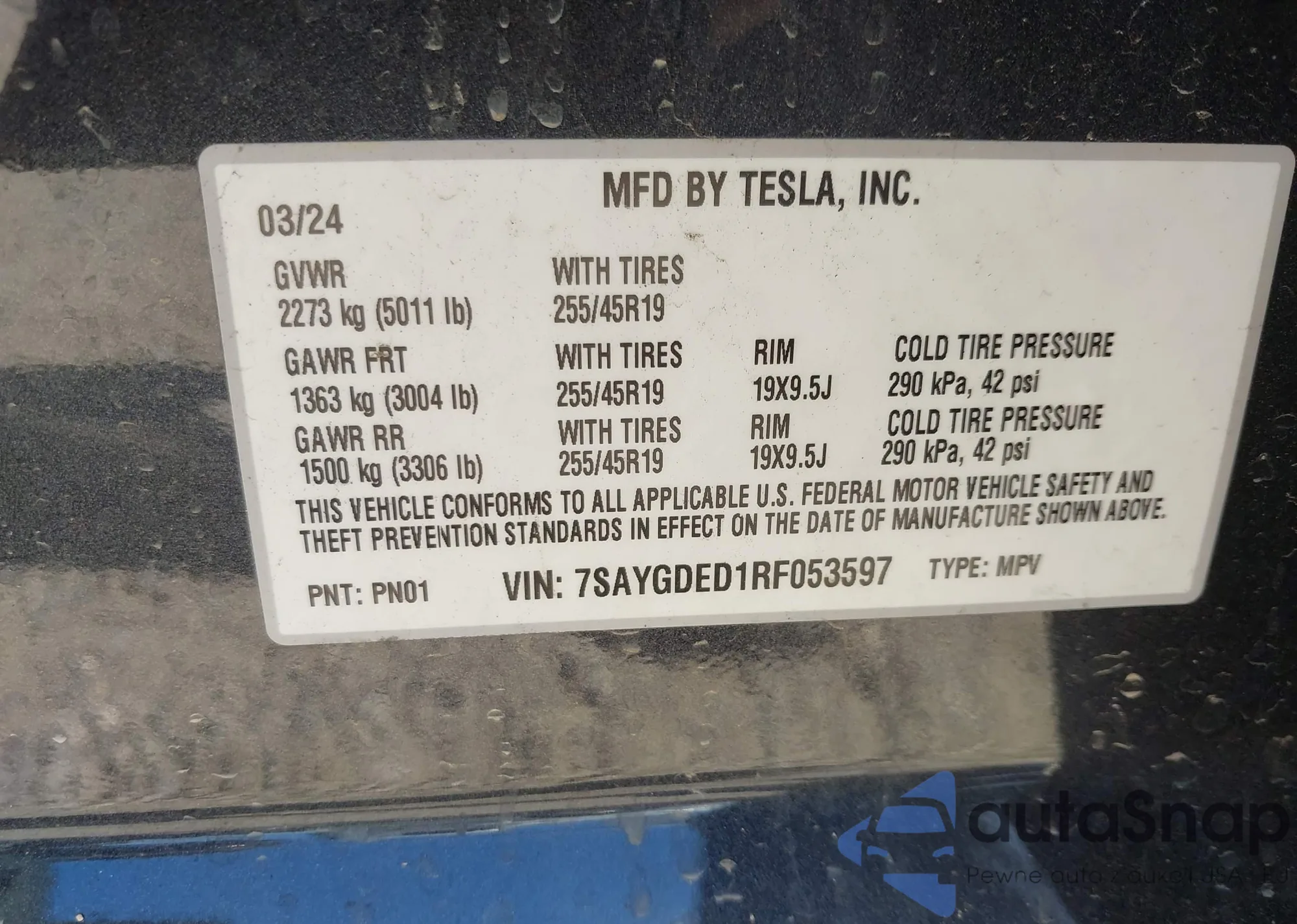 VIN: 7SAYGDED1RF053597