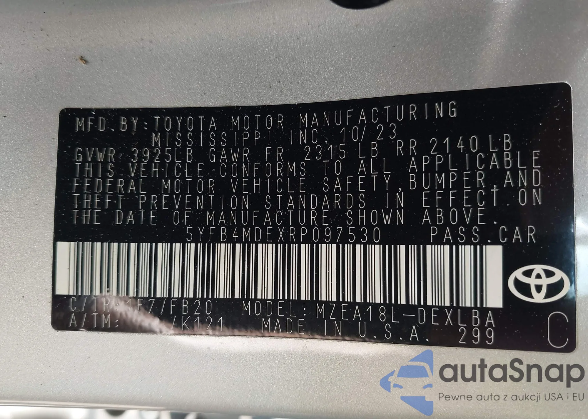 VIN: 5YFB4MDEXRP097530