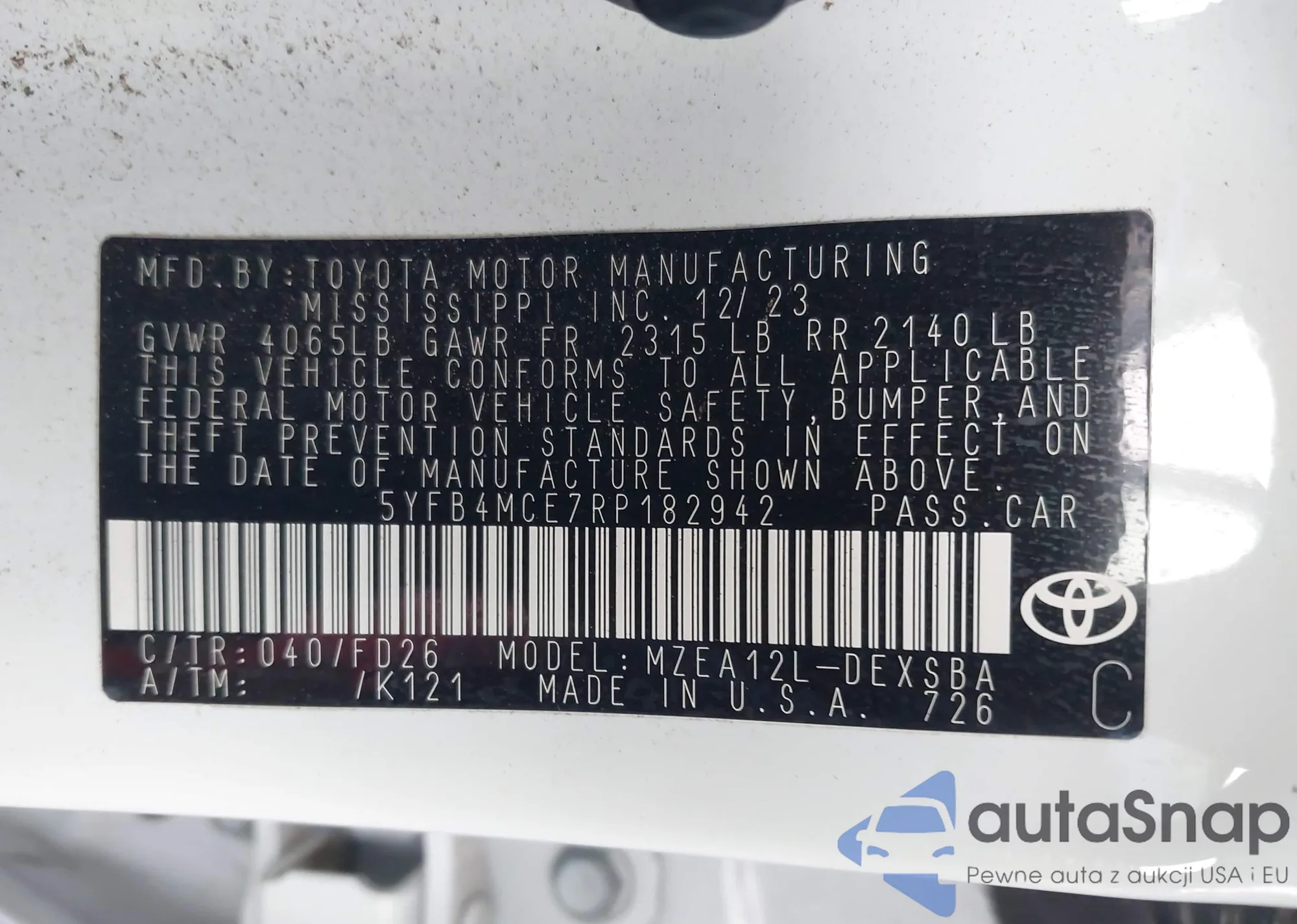 • VIN: 5YFB4MCE7RP182942