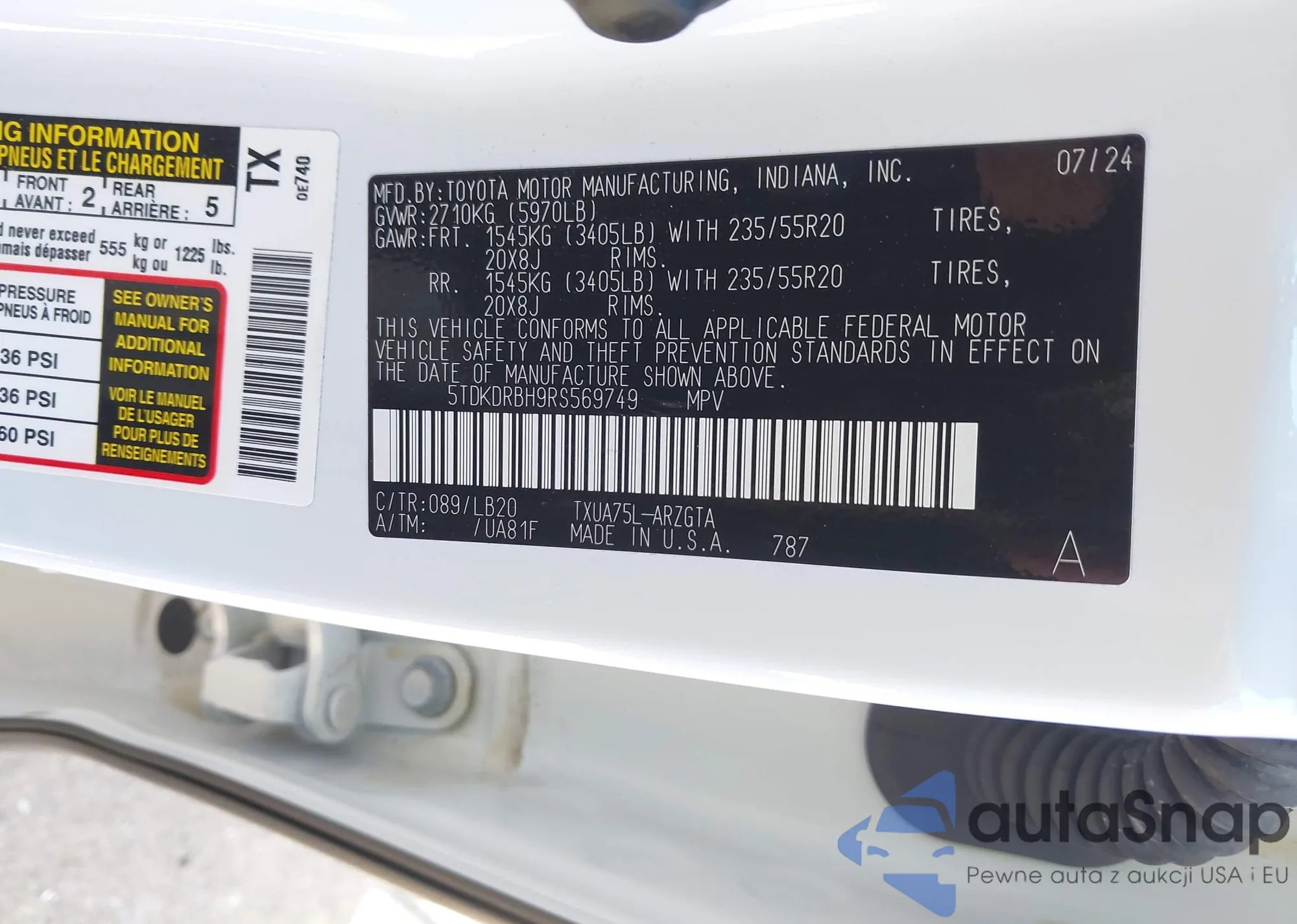 The car Toyota Highlander 2024 (VIN 5TDKDRBH9RS569749) has not been auctioned before. The documents are clean, and the mileage matches or is below the market average. Sold by an insurance company – we recommend purchase. Delivery to the port will take approx. 6–8 weeks.