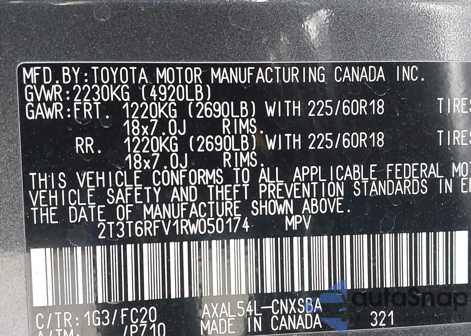 VIN: 2T3T6RFV1RW050174