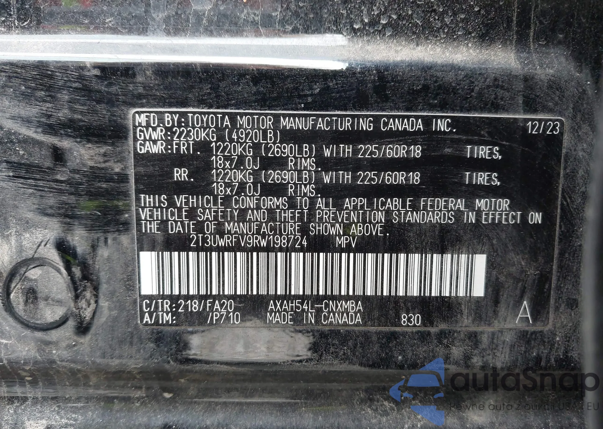 VIN: 2T3UWRFV9RW198724
