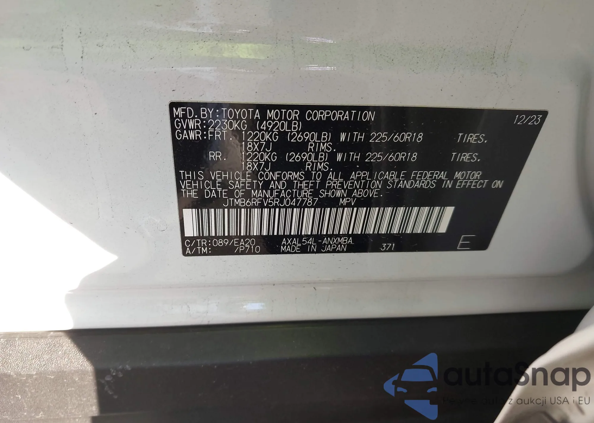 VIN: JTMB6RFV5RJ047787