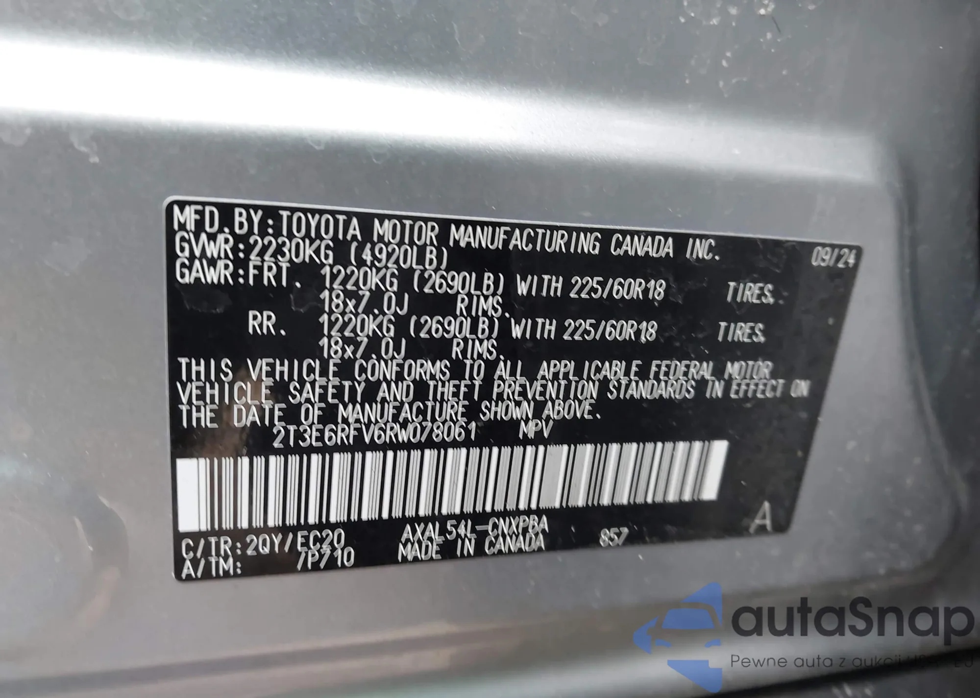 The car Toyota RAV 4 2024 (VIN 2T3E6RFV6RW078061) has not been auctioned before. The documents are clean, and the mileage matches or is below the market average. Sold by an insurance company – we recommend purchase. Delivery to the port will take approx. 6–8 weeks.