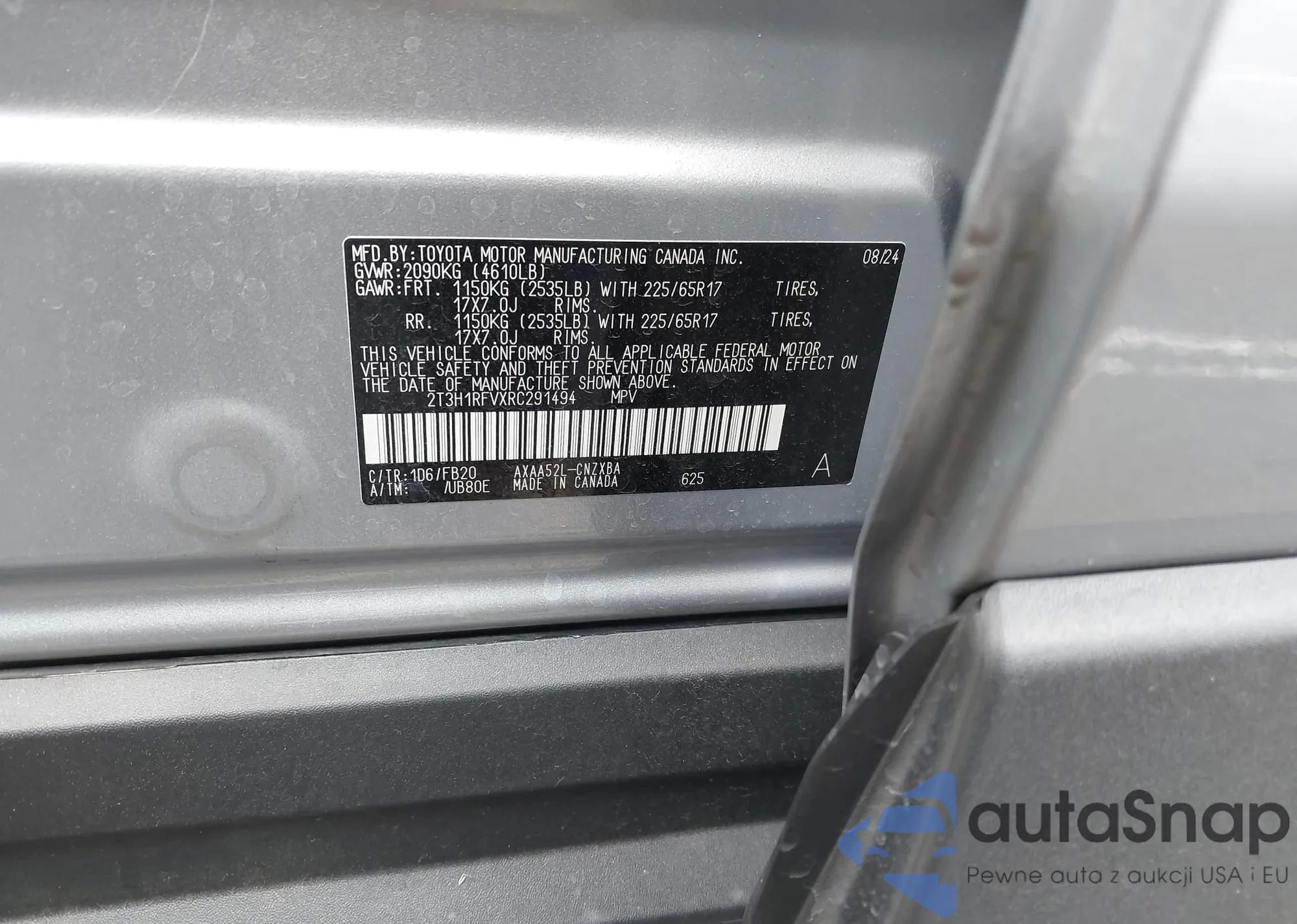 VIN: 2T3H1RFVXRC291494