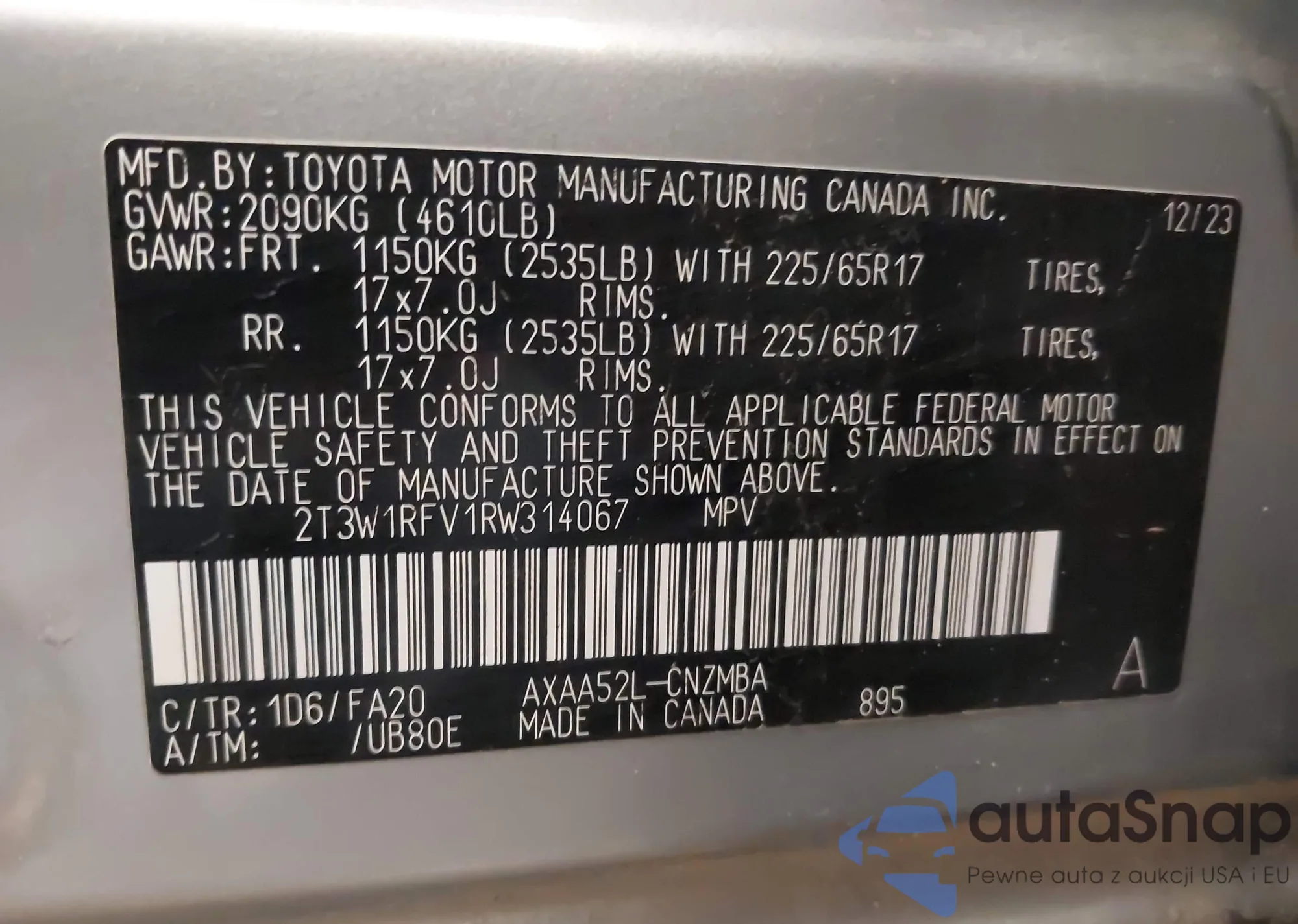VIN: 2T3W1RFV1RW314067