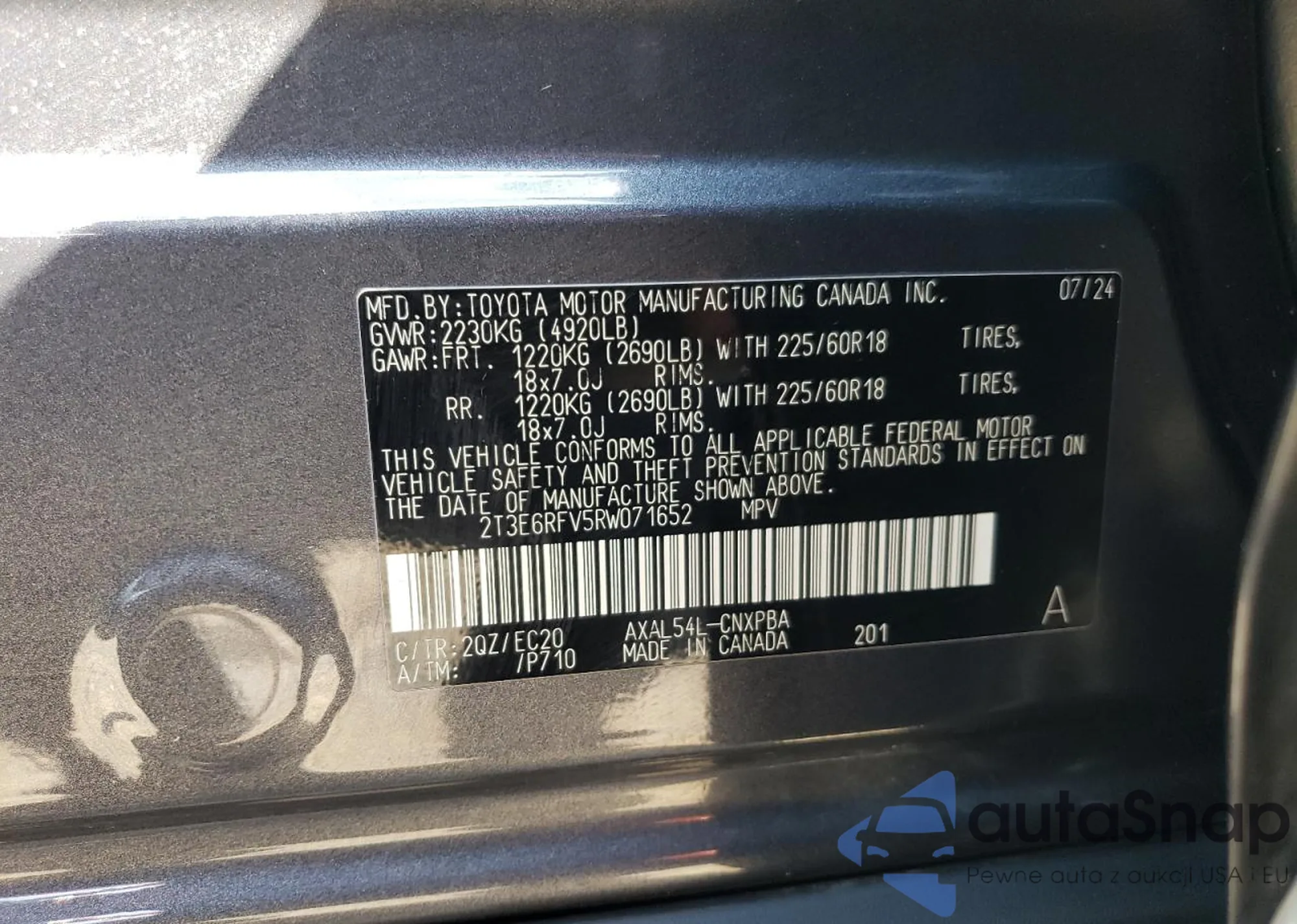 VIN: 2T3E6RFV5RW071652