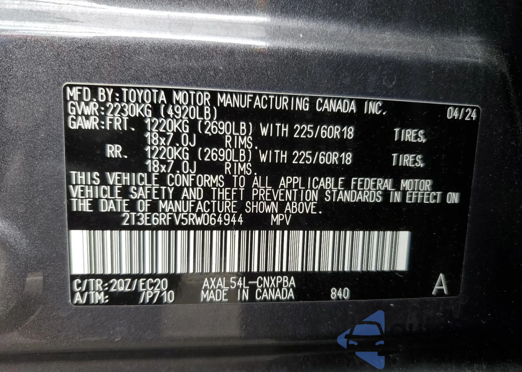 VIN: 2T3E6RFV5RW064944