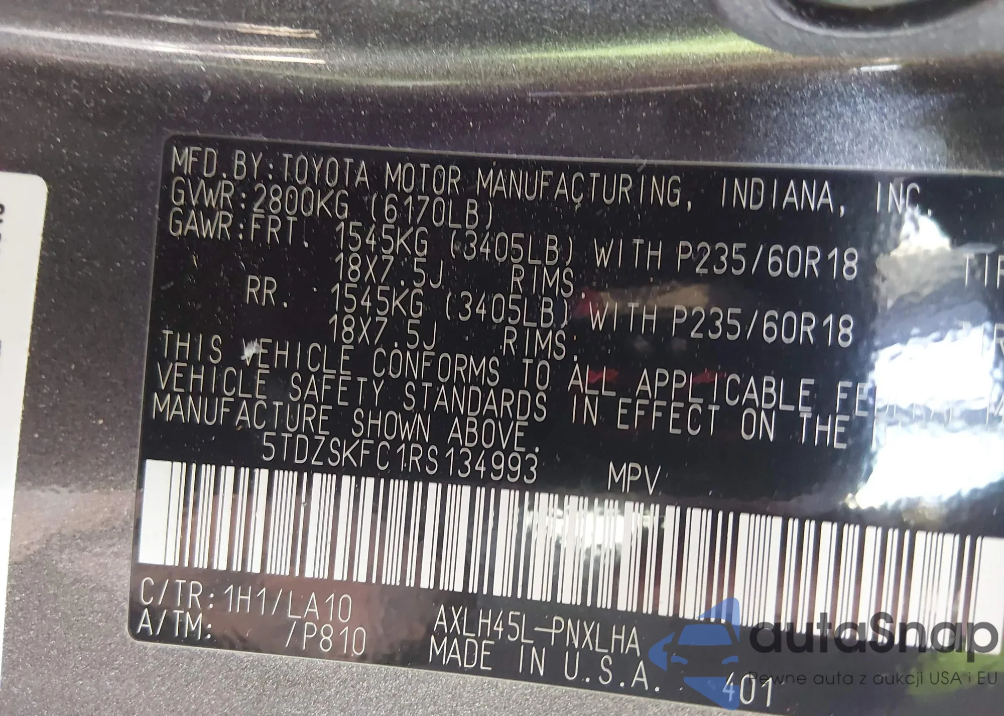 The car Toyota Sienna 2024 (VIN 5TDZSKFC1RS134993) has not been auctioned before. The documents are clean, and the mileage matches or is below the market average. Sold by an insurance company – we recommend purchase. Delivery to the port will take approx. 6–8 weeks.
