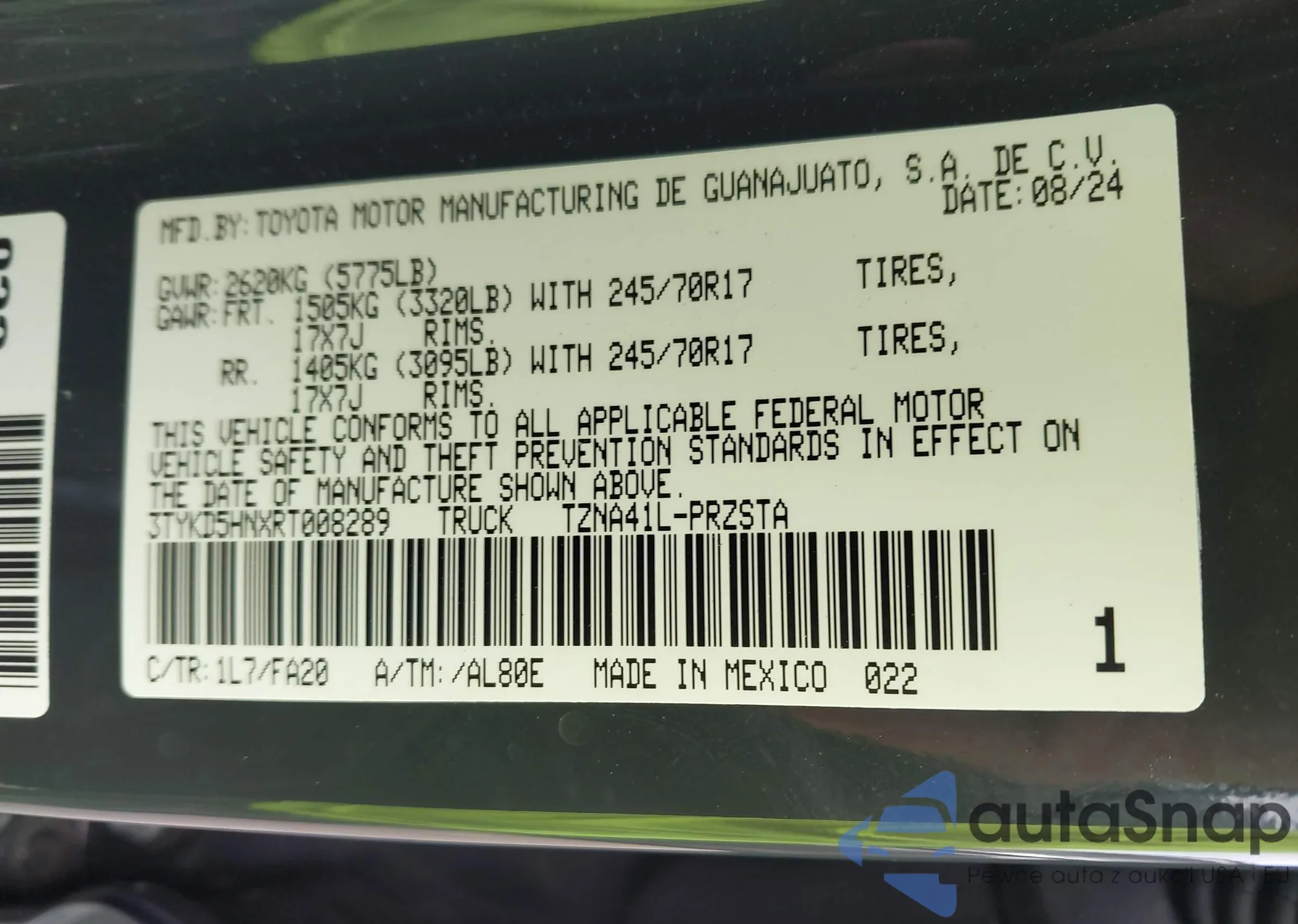 VIN: 3TYKD5HNXRT008289