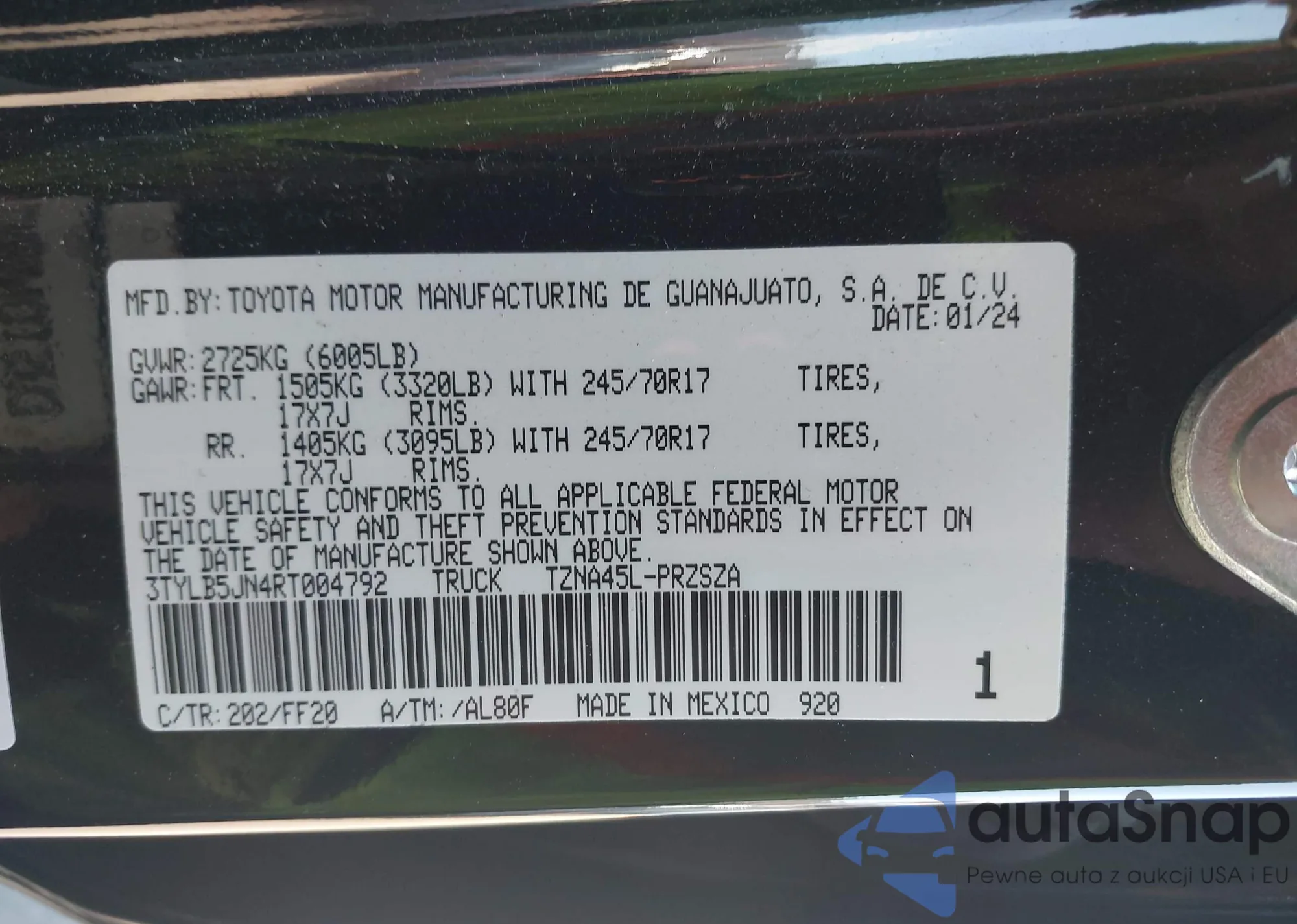 VIN: 3TYLB5JN4RT004792