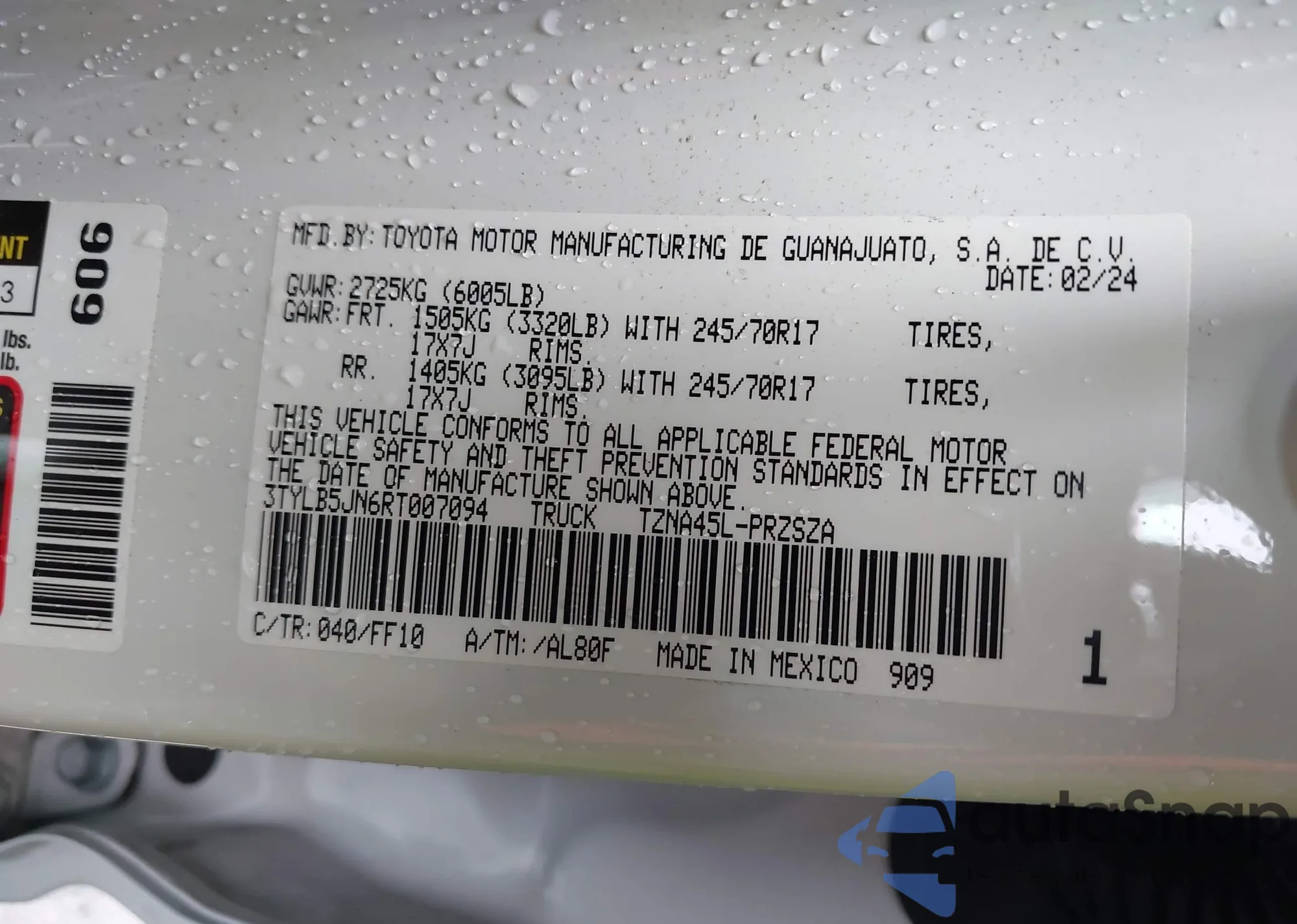 VIN: 3TYLB5JN6RT007094