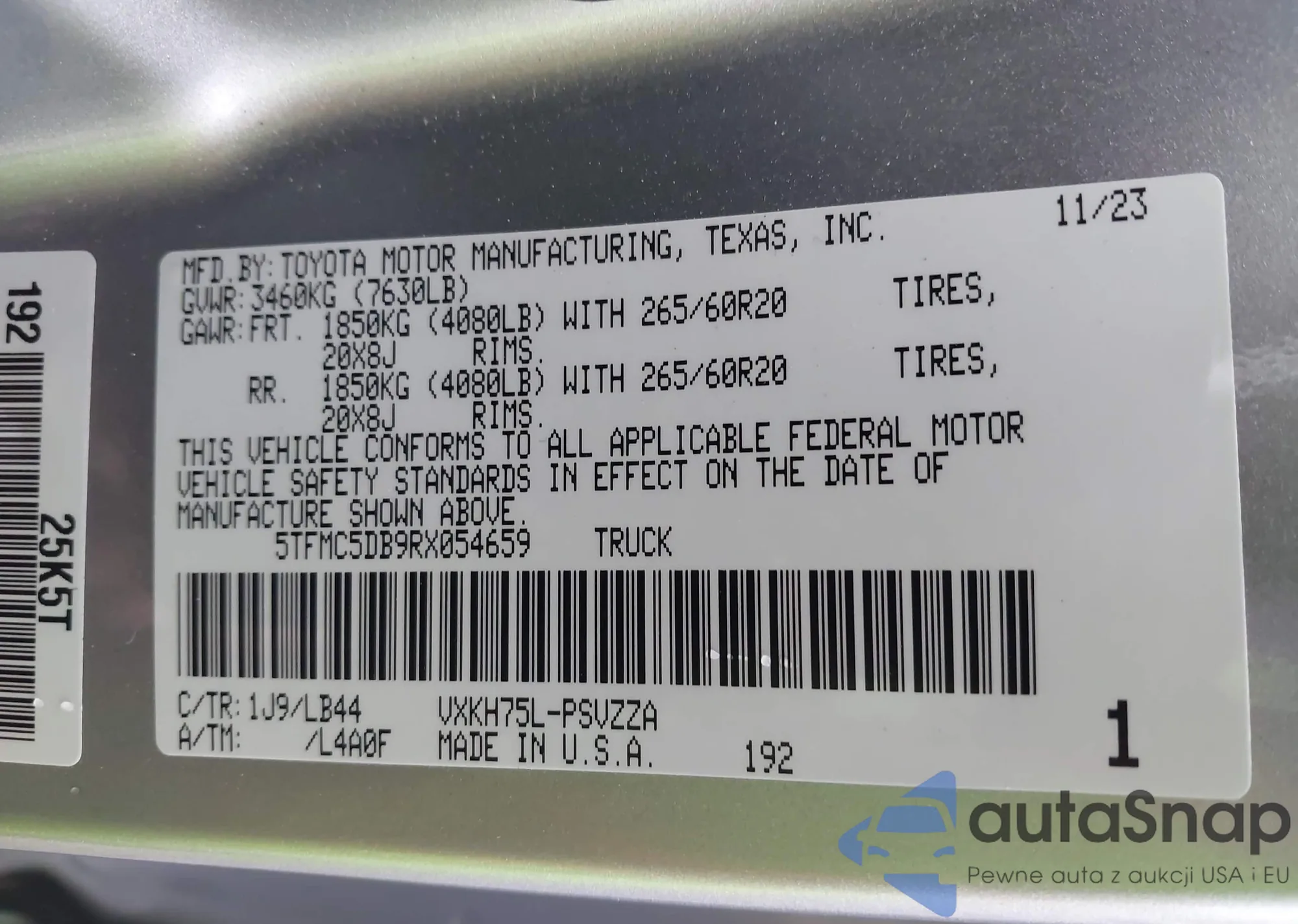 The car Toyota Tundra 2024 (VIN 5TFMC5DB9RX054659) has not been auctioned before. The documents are clean, and the mileage matches or is below the market average. Sold by an insurance company – we recommend purchase. Delivery to the port will take approx. 6–8 weeks.