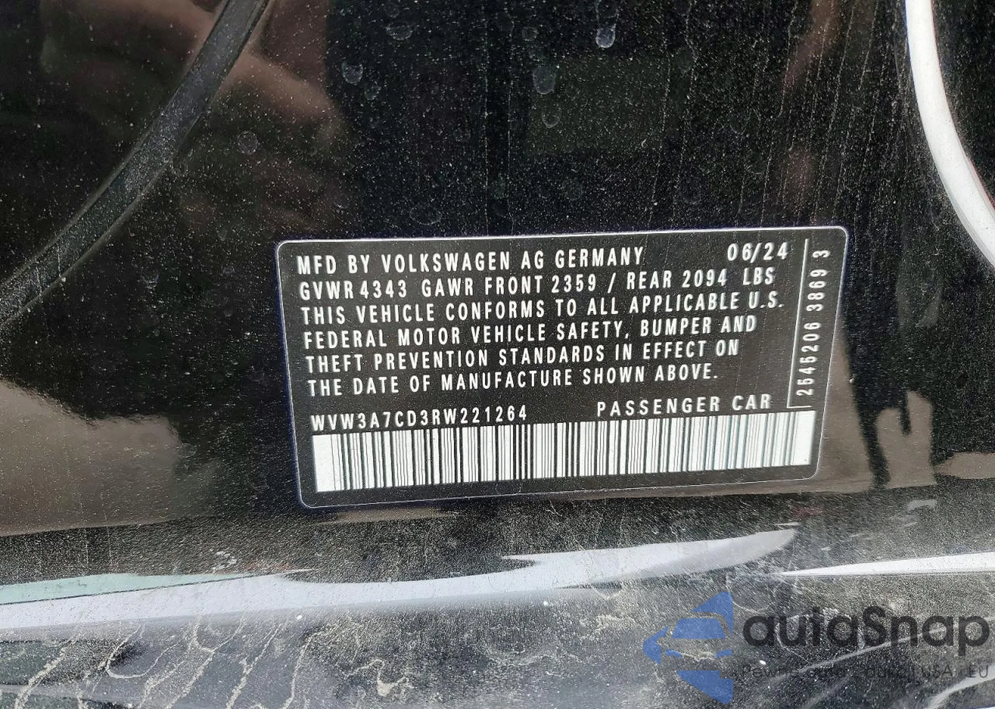 The car Volkswagen GTI 2024 (VIN WVW3A7CD3RW221264) has not been auctioned before. The documents are clean, and the mileage matches or is below the market average. Sold by an insurance company – we recommend purchase. Delivery to the port will take approx. 6–8 weeks.