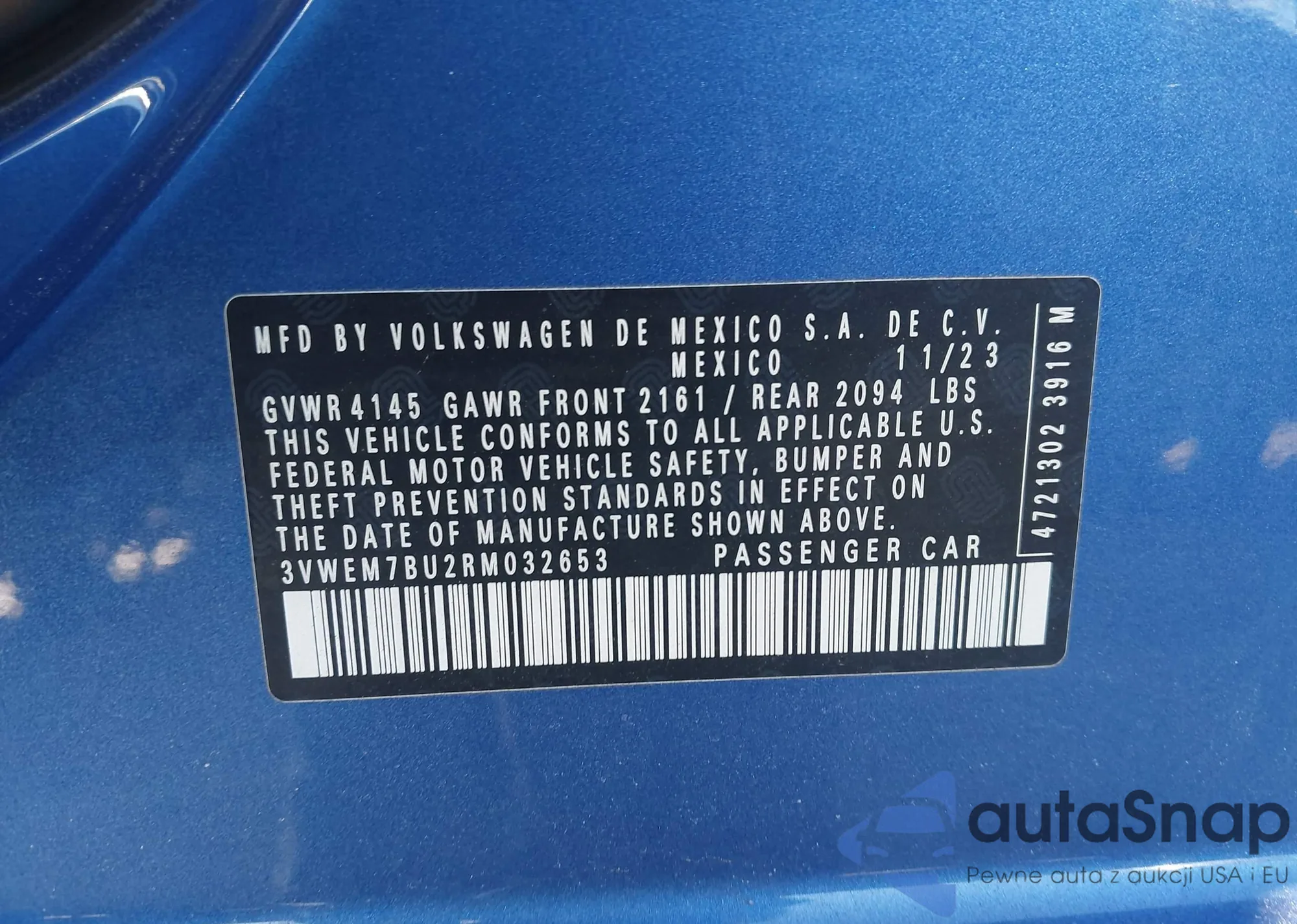VIN: 3VWEM7BU2RM032653