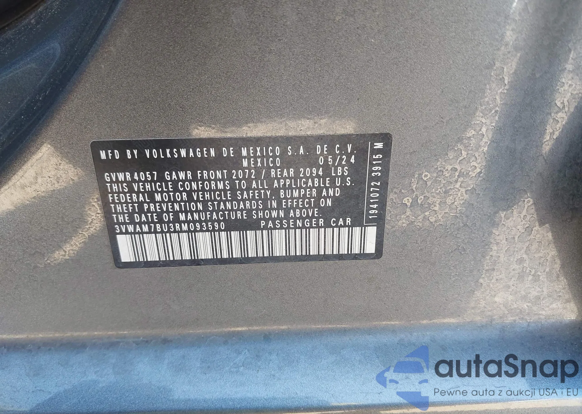VIN: 3VWAM7BU3RM093590