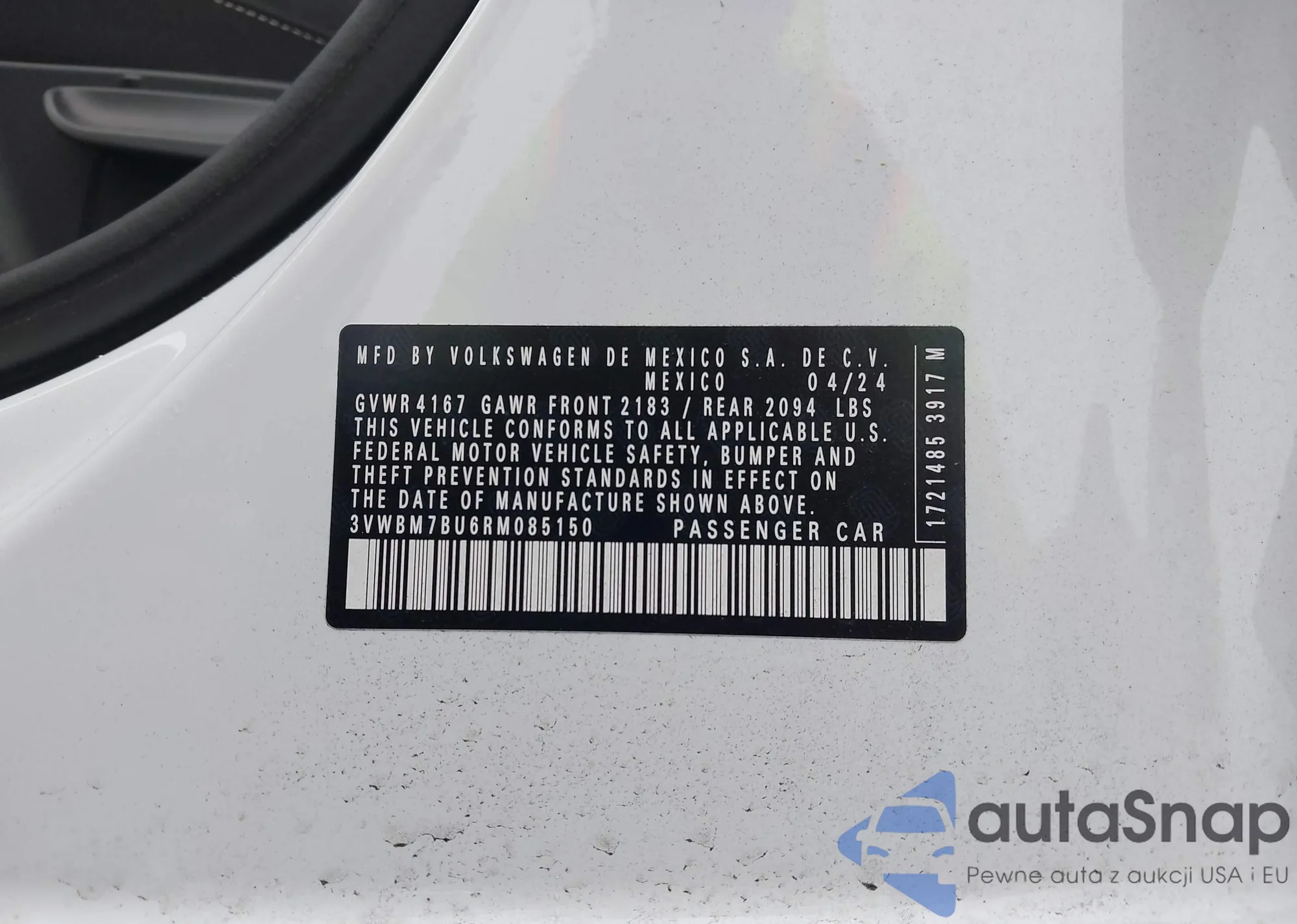 VIN: 3VWBM7BU6RM085150