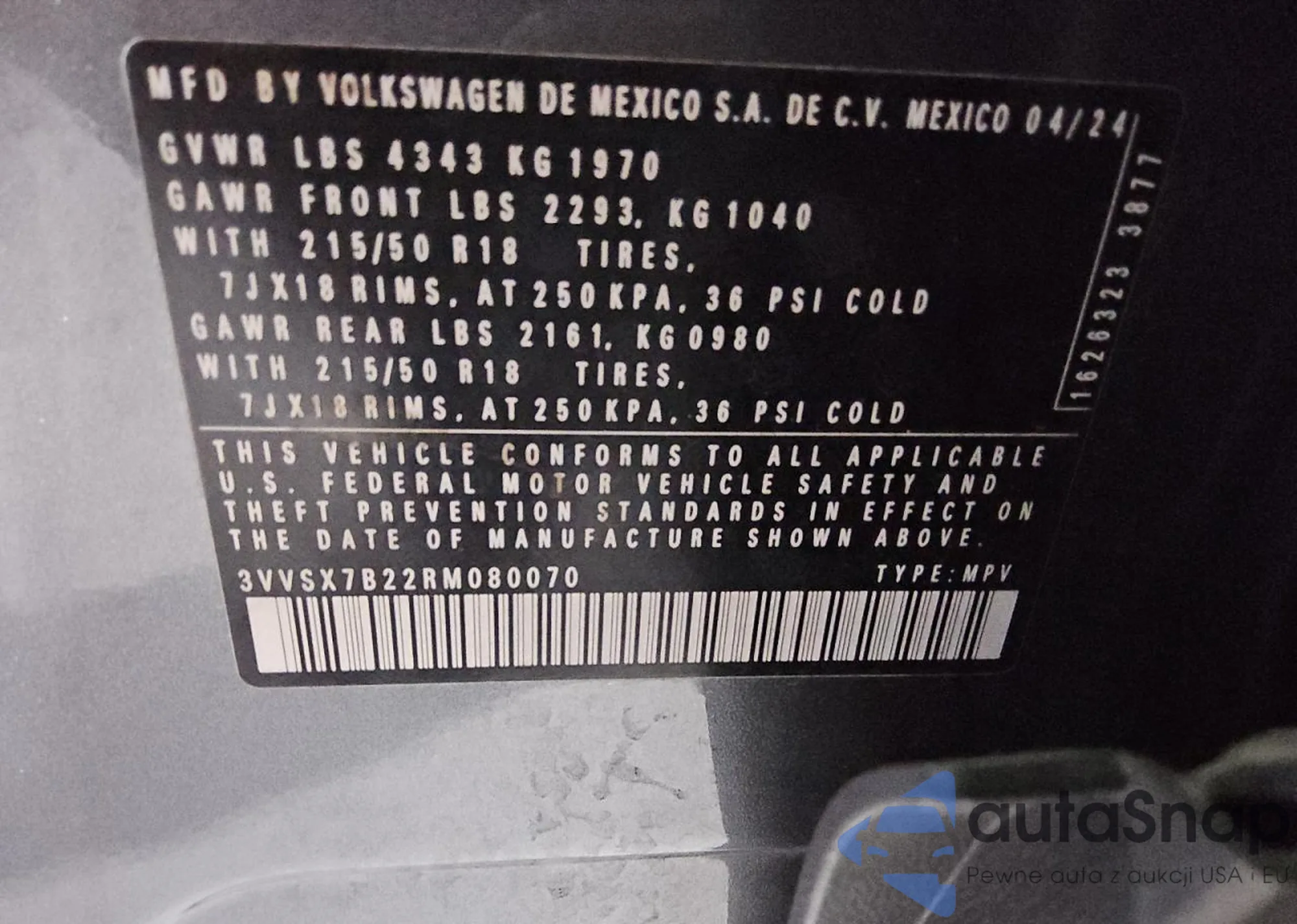 VIN: 3VVSX7B22RM080070