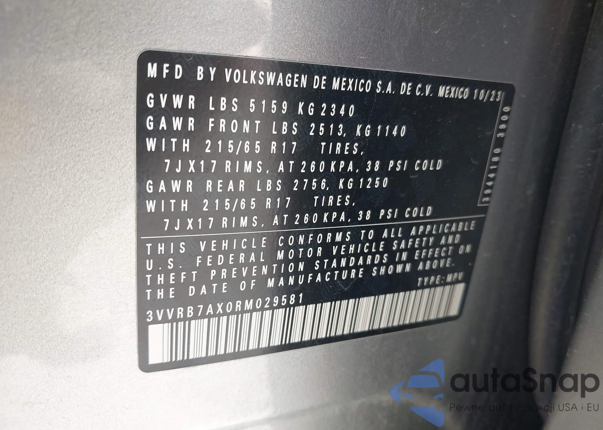 VIN: 3VVRB7AX0RM029581