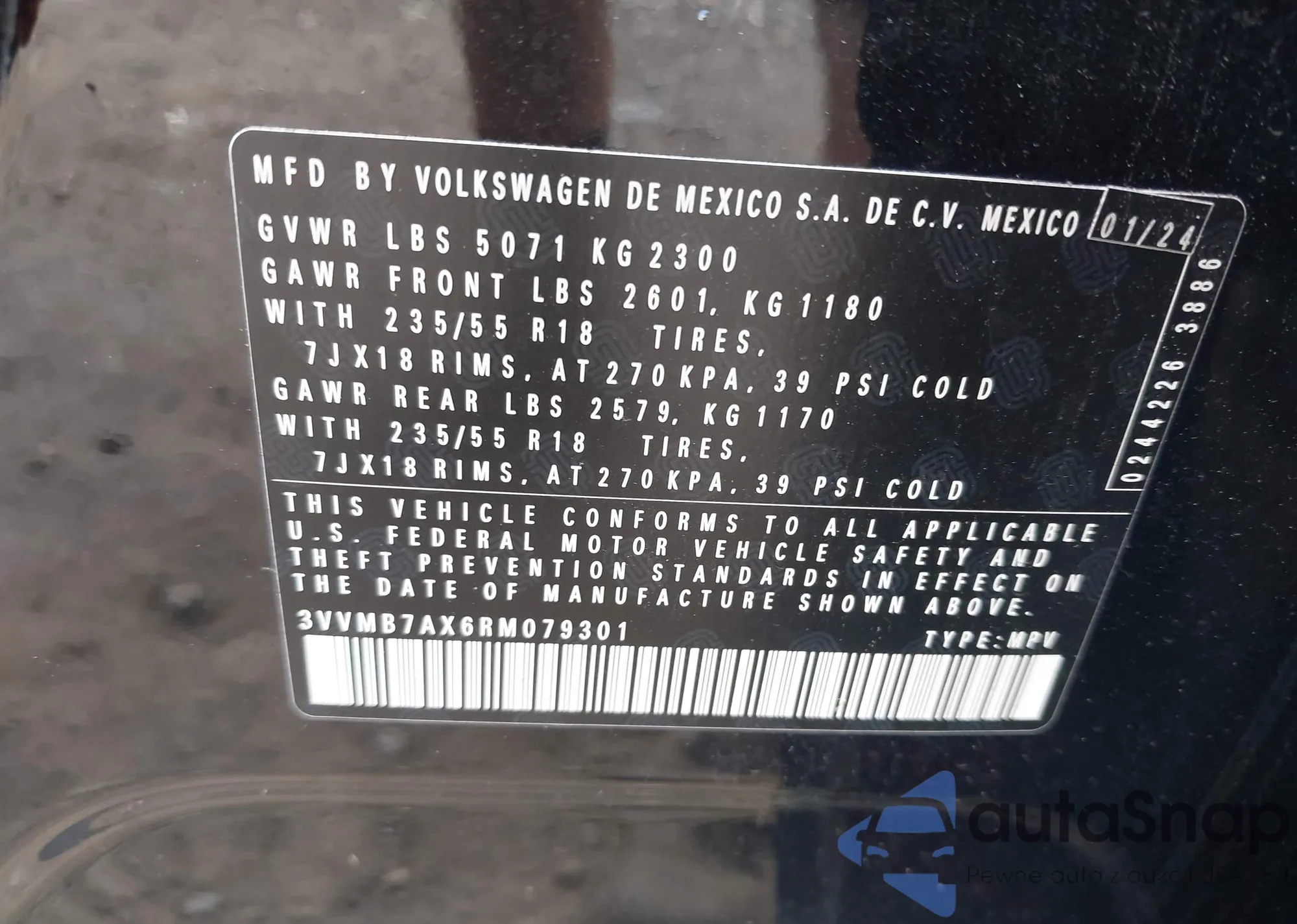 VIN: 3VVMB7AX6RM079301