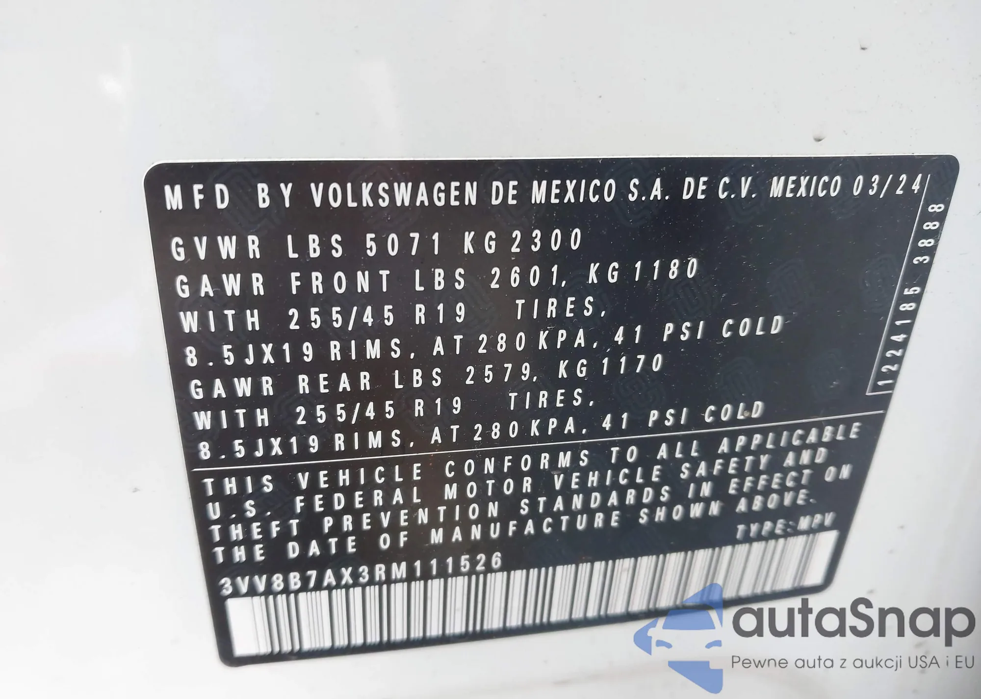 VIN: 3VV8B7AX3RM111526