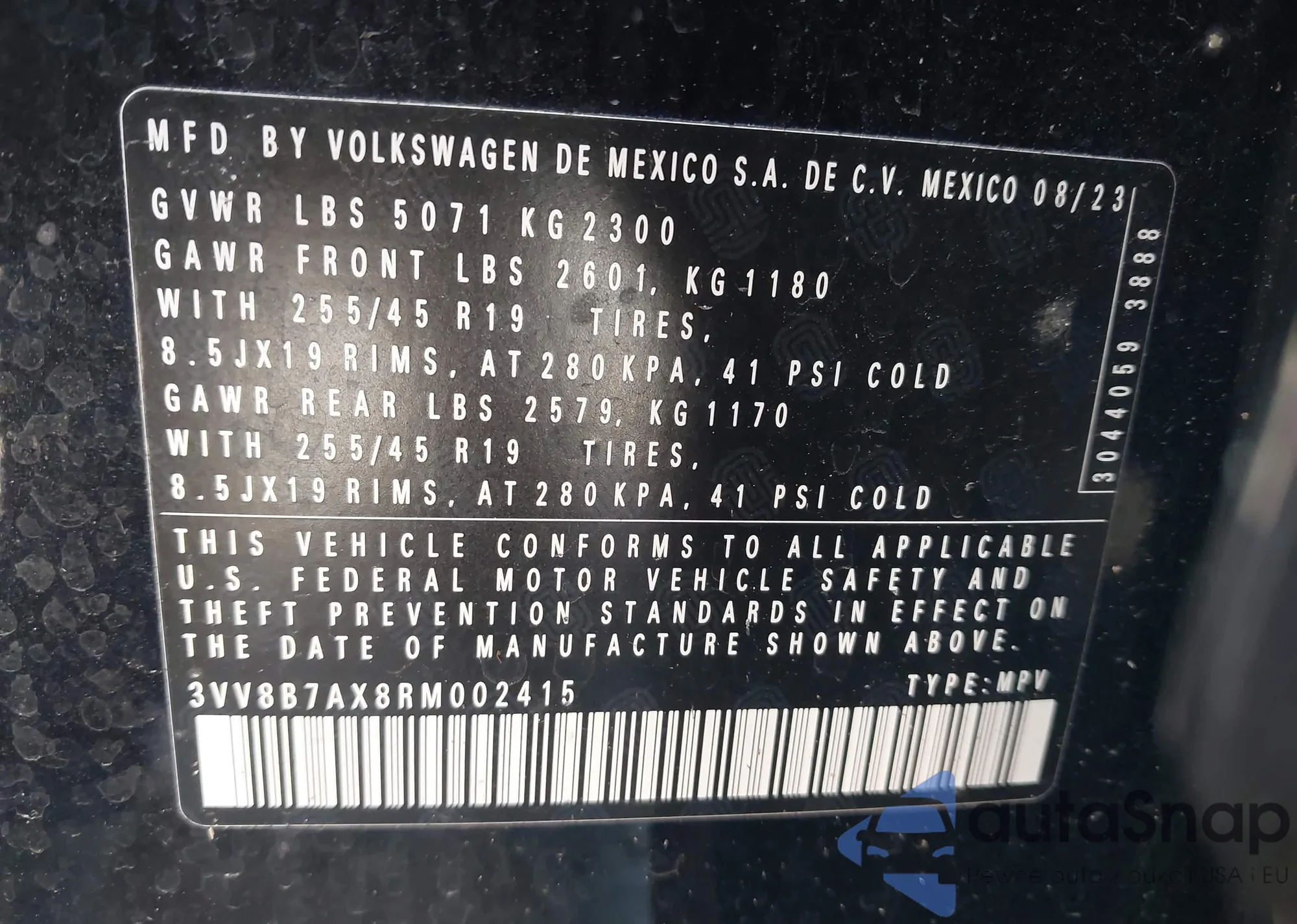 VIN: 3VV8B7AX8RM002415