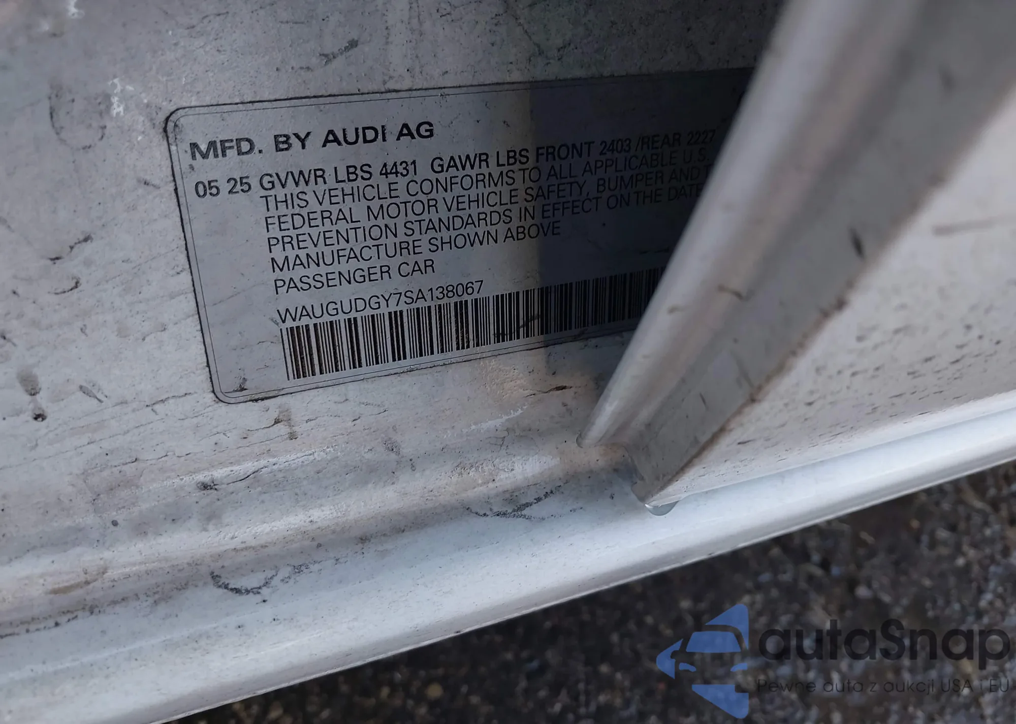 • VIN: WAUGUDGY7SA138067