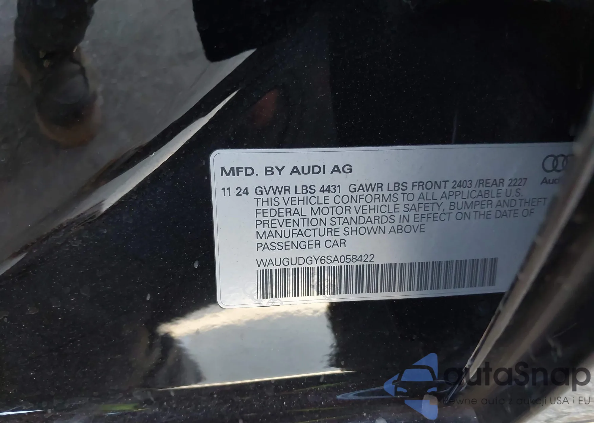 • VIN: WAUGUDGY6SA058422