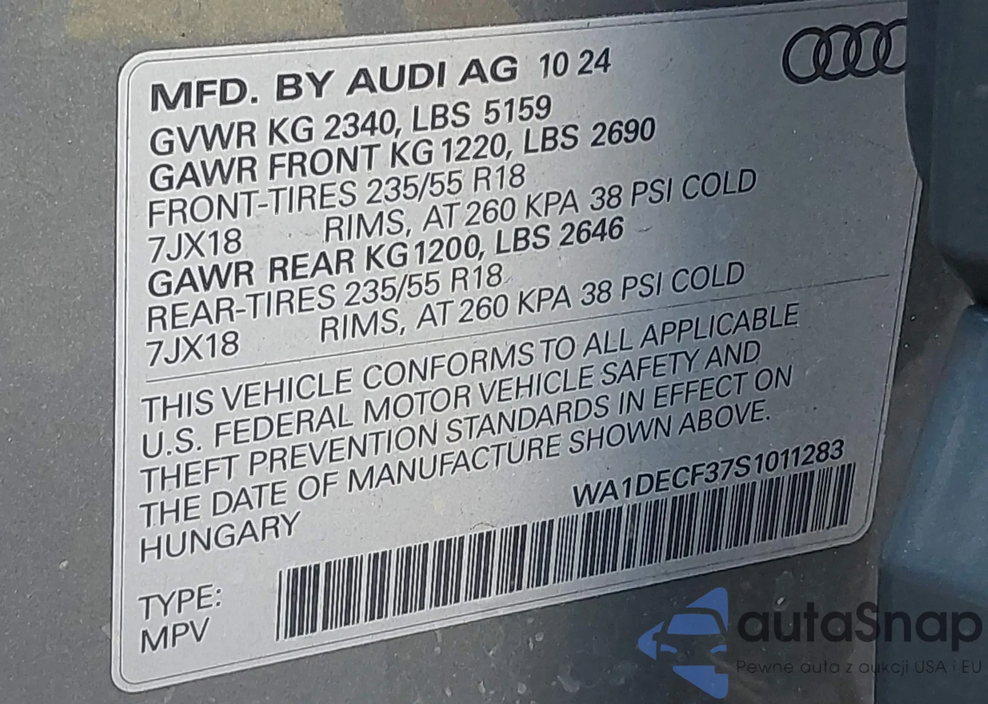 VIN: WA1DECF37S1011283