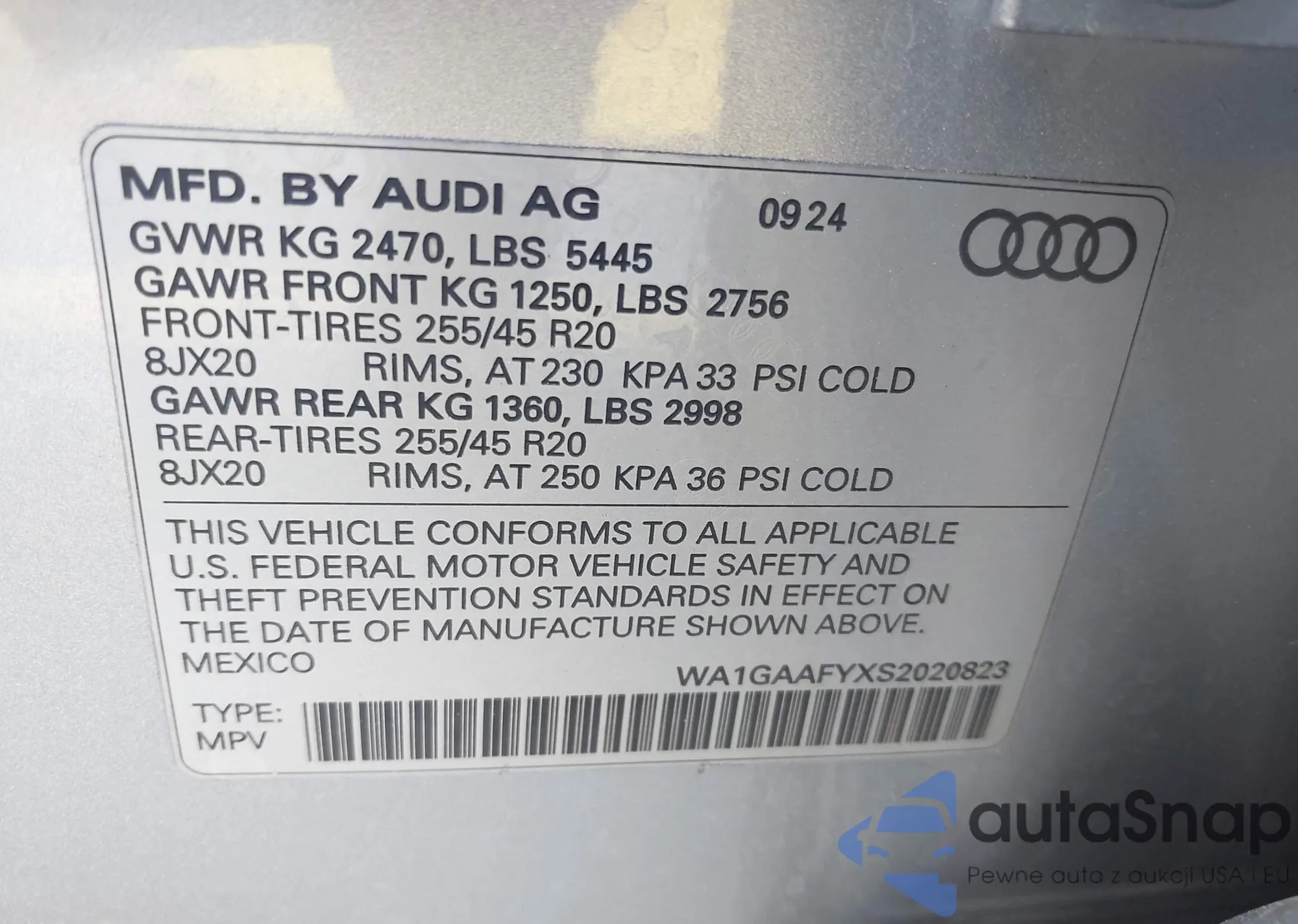 VIN: WA1GAAFYXS2020823