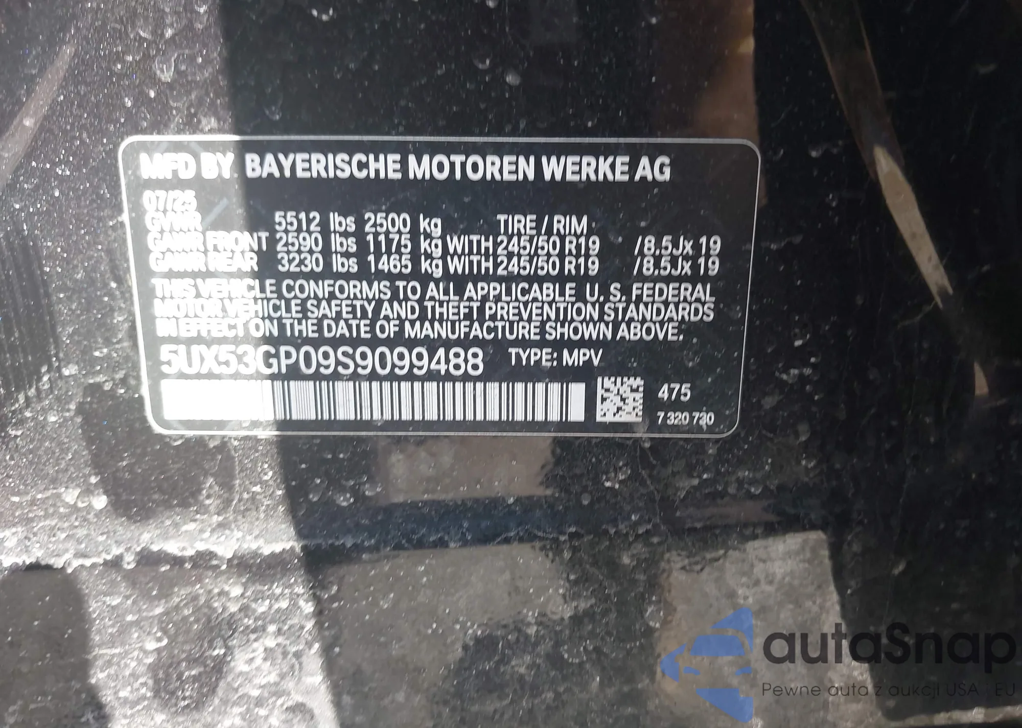 VIN: 5UX53GP09S9099488