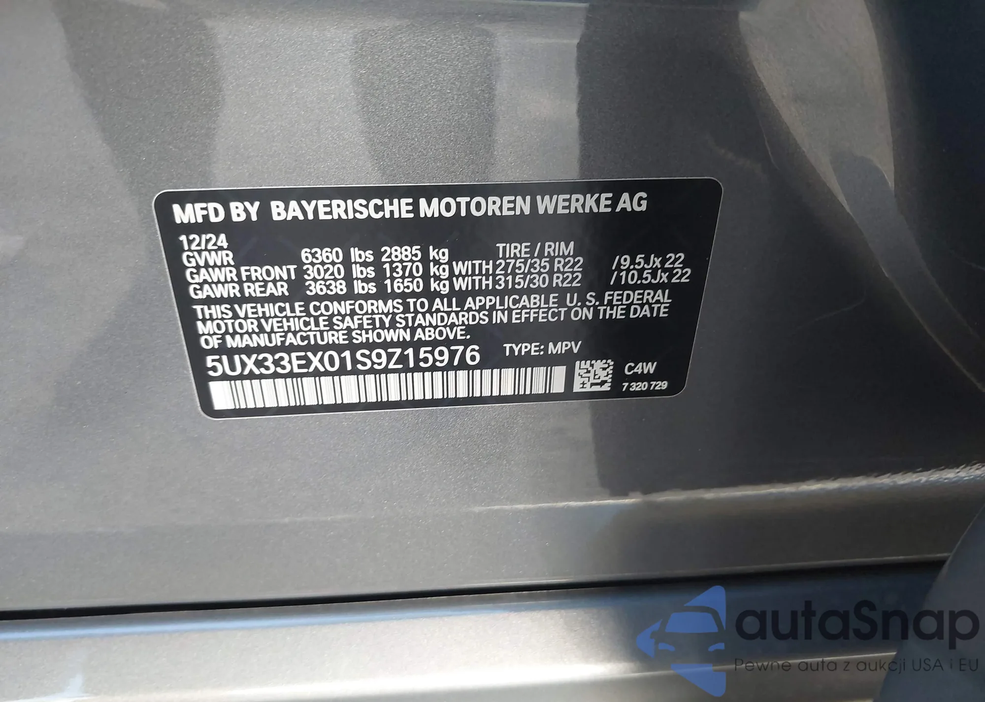 VIN: 5UX33EX01S9Z15976