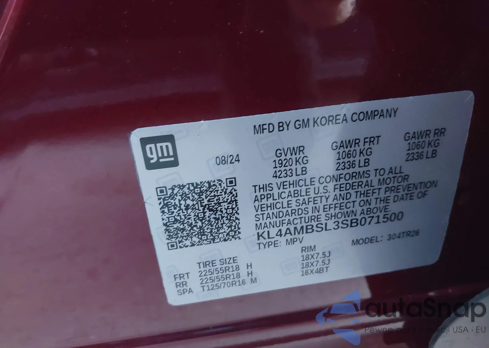 • VIN: KL4AMBSL3SB071500