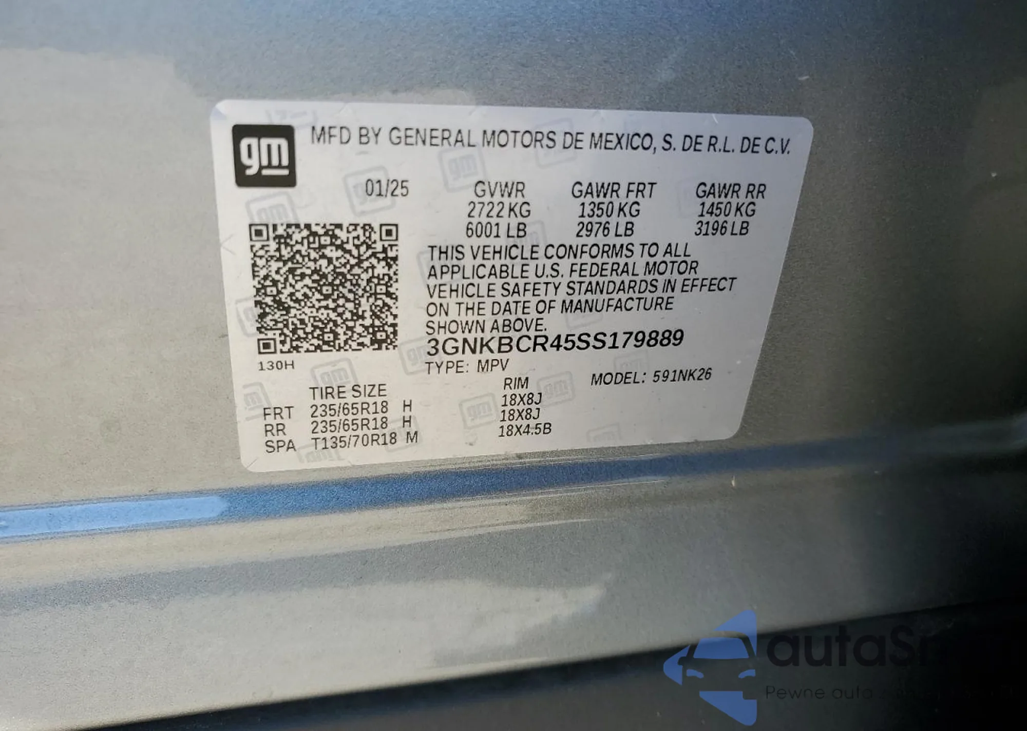 VIN: 3GNKBCR45SS179889