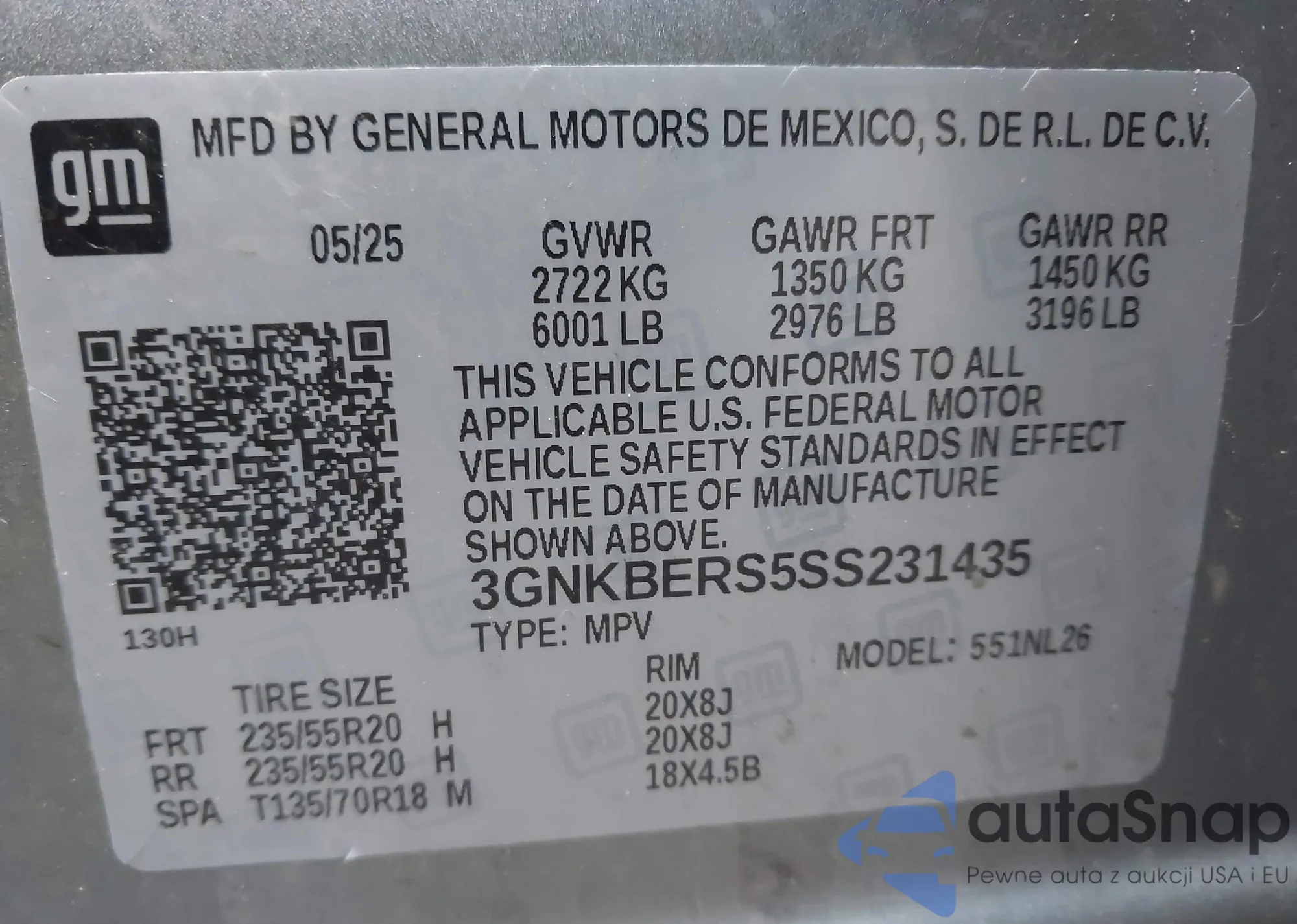 The car Chevrolet Blazer 2025 (VIN 3GNKBERS5SS231435) has not been auctioned before. The documents are clean, and the mileage matches or is below the market average. Sold by an insurance company – we recommend purchase. Delivery to the port will take approx. 6–8 weeks.