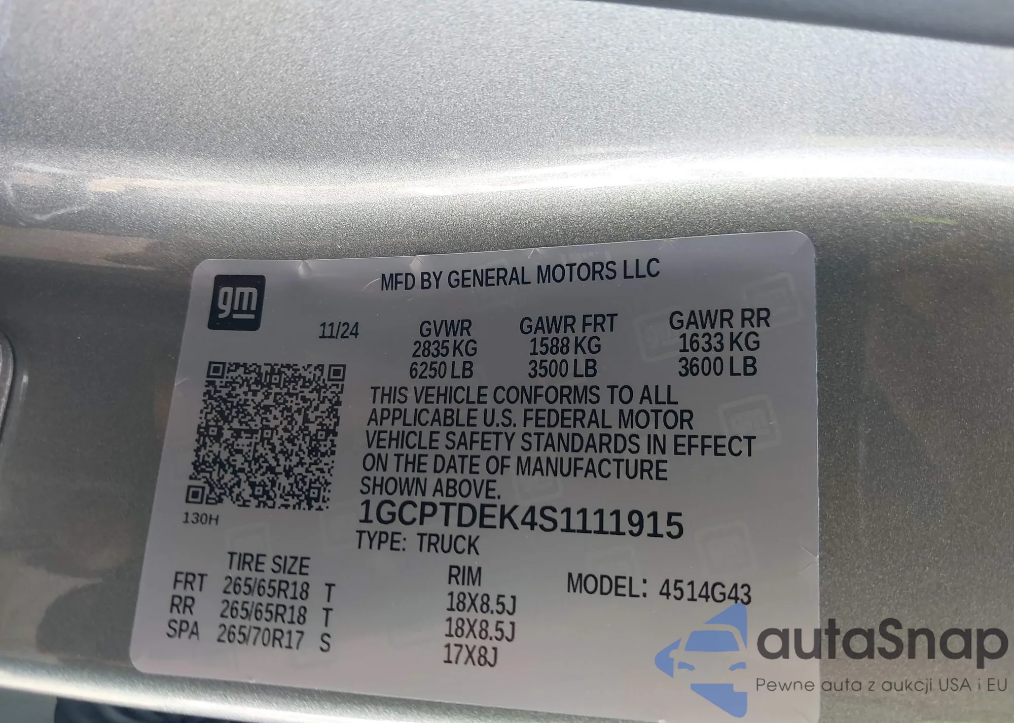 VIN: 1GCPTDEK4S1111915