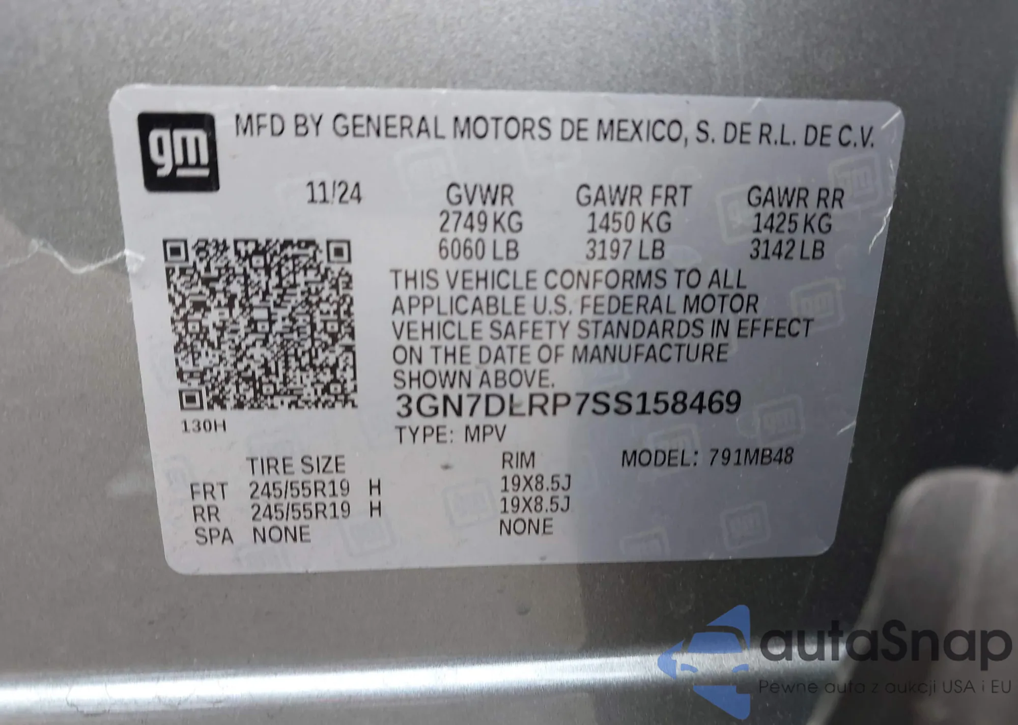 The car Chevrolet Equinox 2025 (VIN 3GN7DLRP7SS158469) has not been auctioned before. The documents are clean, and the mileage matches or is below the market average. Sold by an insurance company – we recommend purchase. Delivery to the port will take approx. 6–8 weeks.