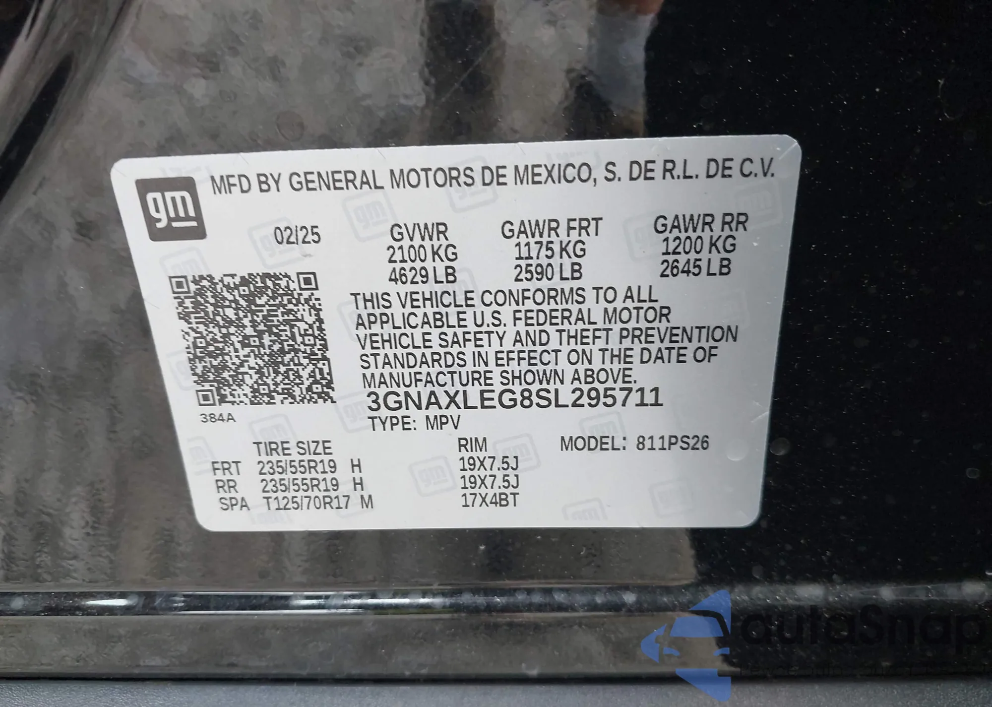 VIN: 3GNAXLEG8SL295711
