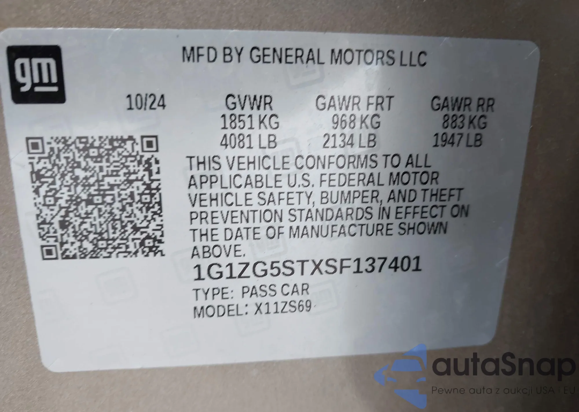 VIN: 1G1ZG5STXSF137401