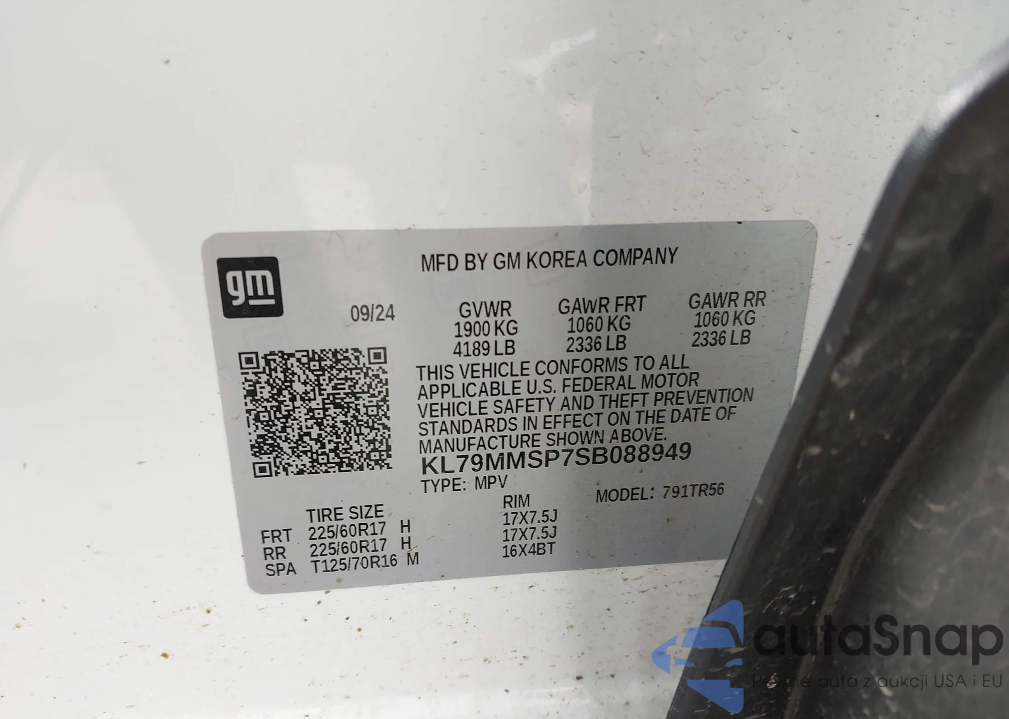 The car Chevrolet TrailBlazer 2025 (VIN KL79MMSP7SB088949) has not been auctioned before. The documents are clean, and the mileage matches or is below the market average. Sold by an insurance company – we recommend purchase. Delivery to the port will take approx. 6–8 weeks.